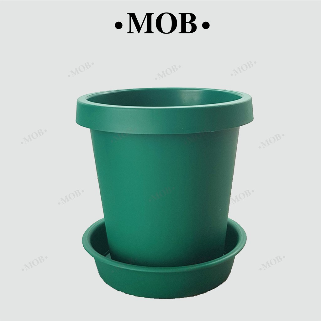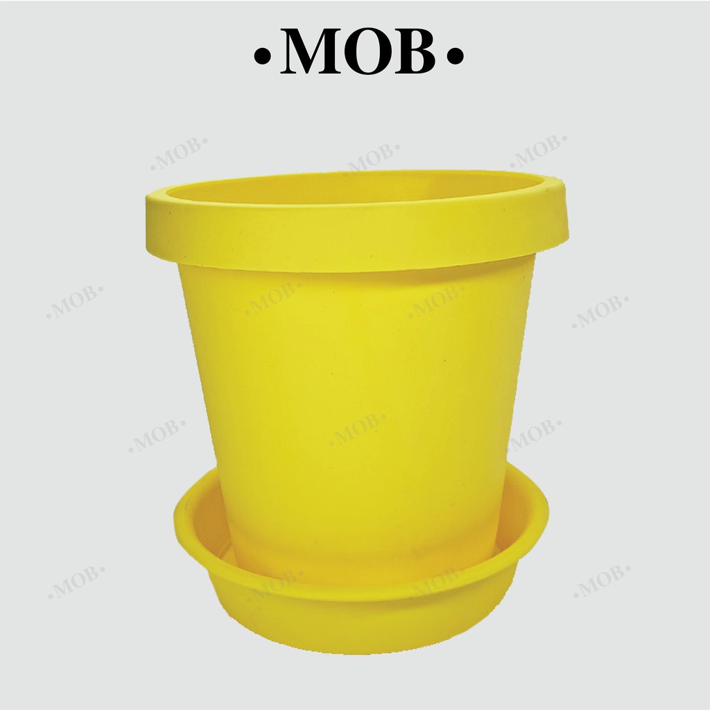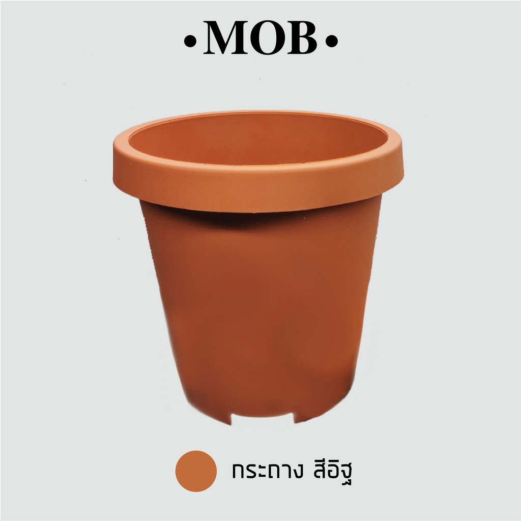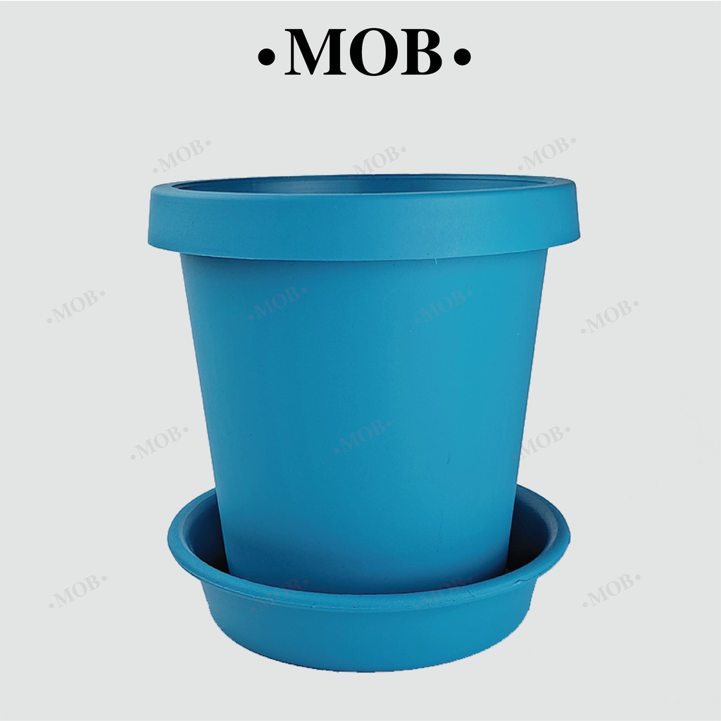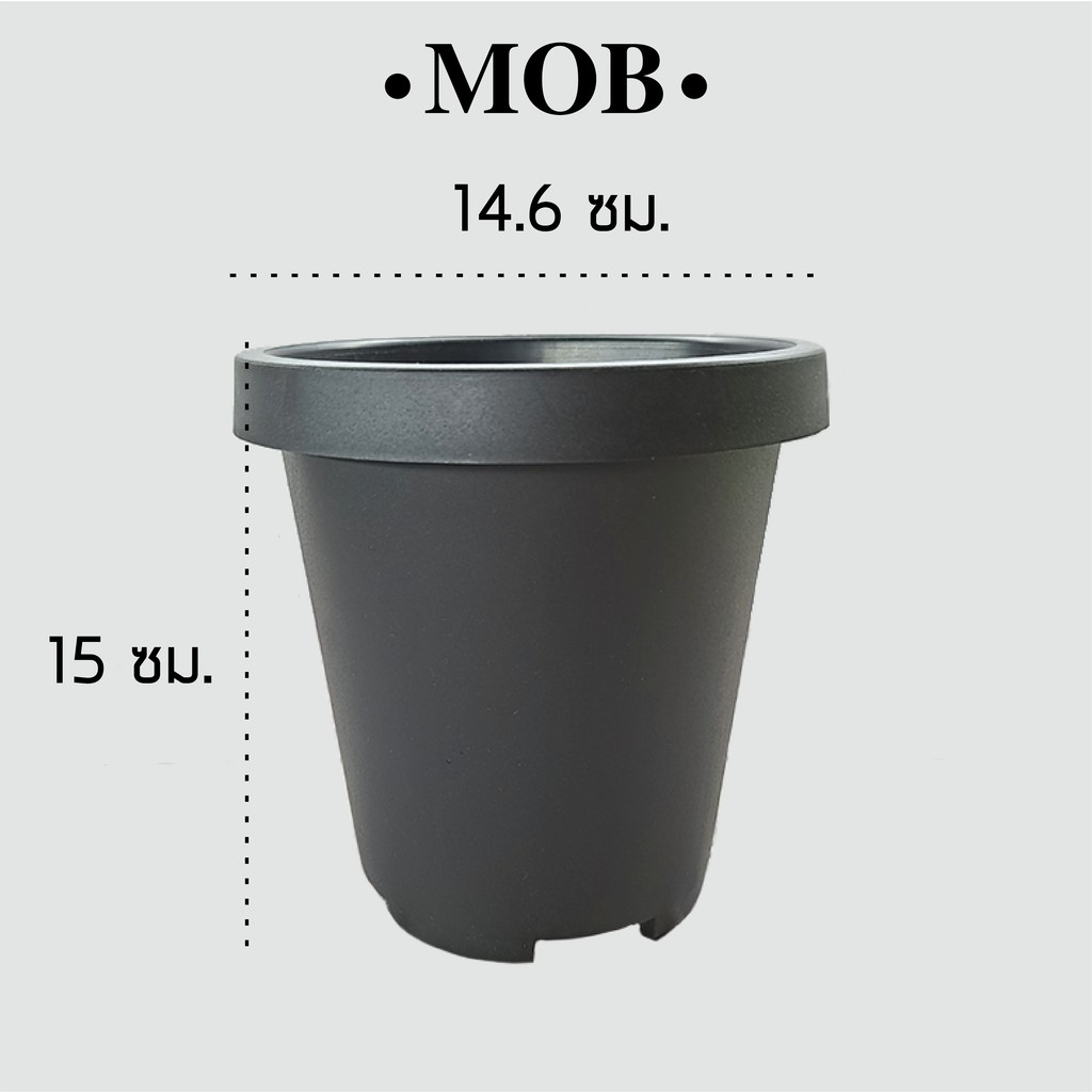 MOB กระถาง 6 นิ้ว ทรงสูง เนื้อด้าน กระถางพร้อมจานรอง ปากกลม พับขอบ ขอบพับ