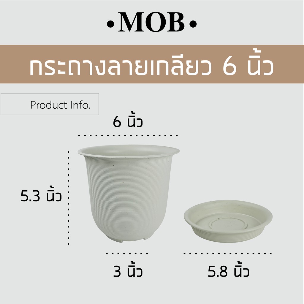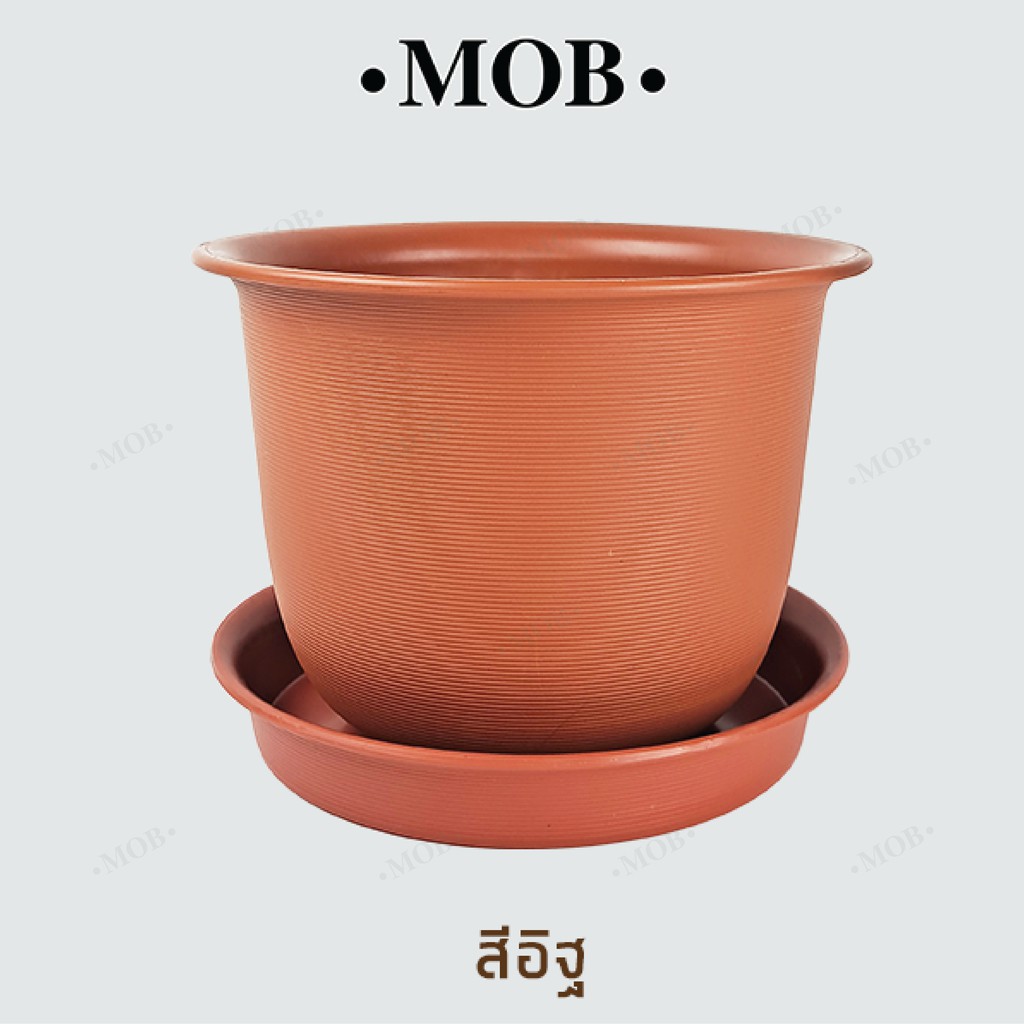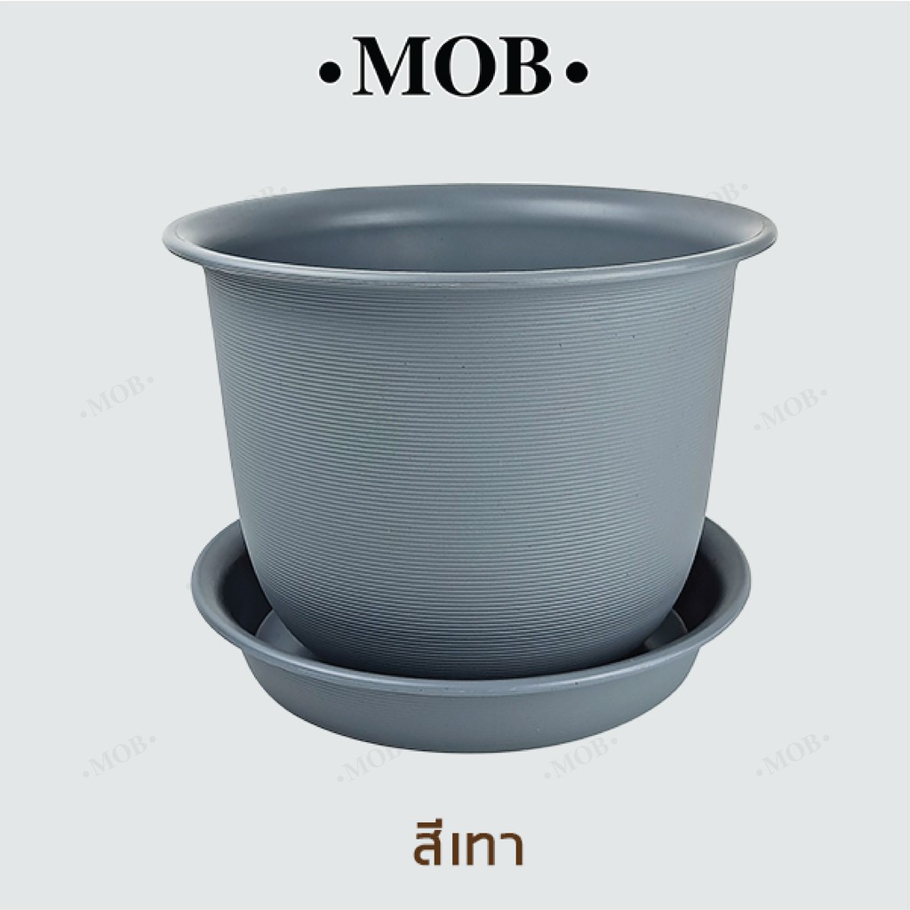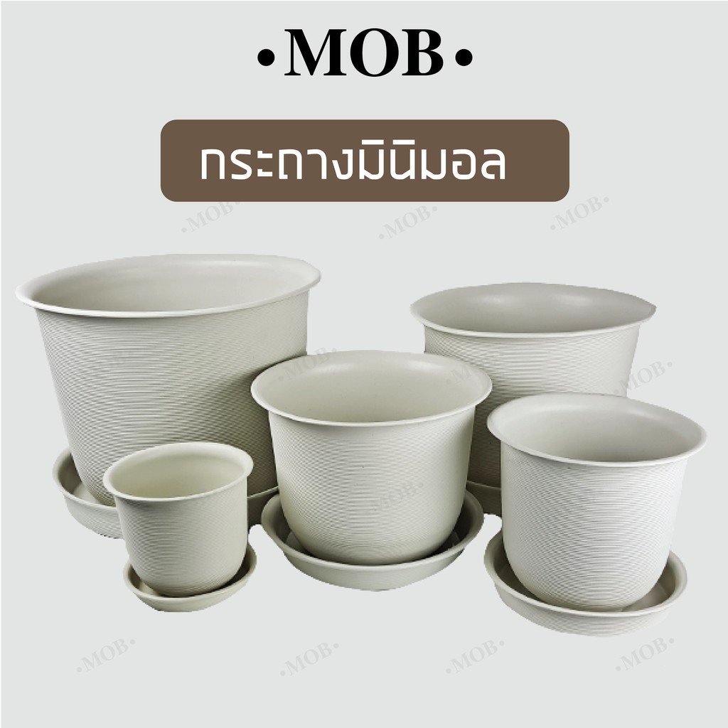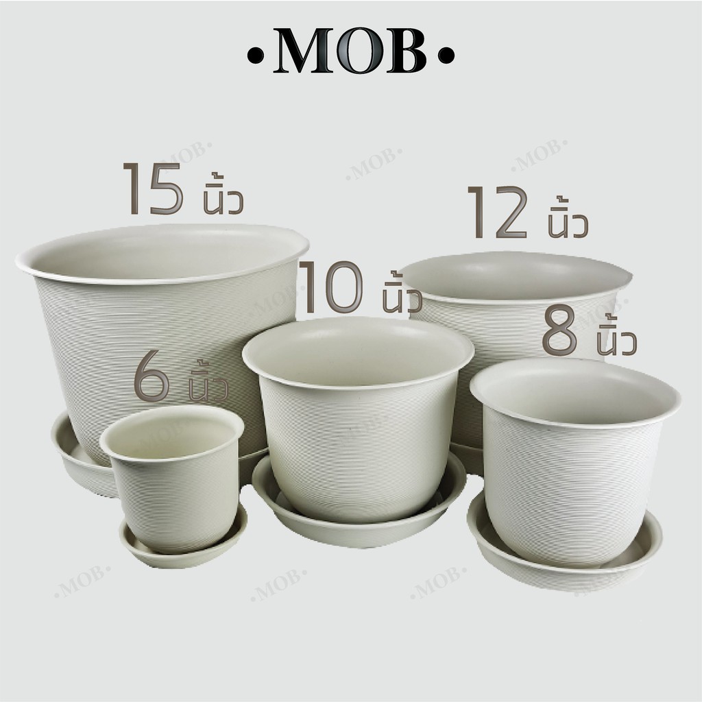 MOB กระถางเกลียว 6 8 10 12 15 นิ้ว พร้อมจานรอง กระถางต้นไม้ มินิมอล แข็งแรง