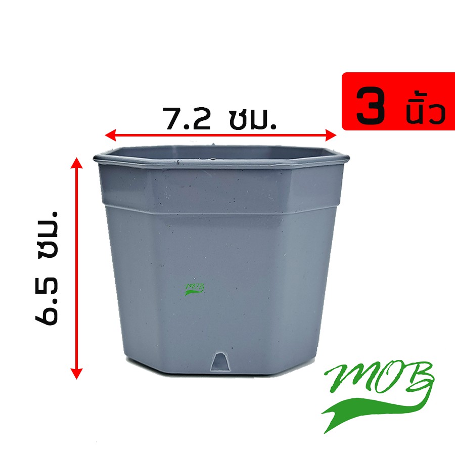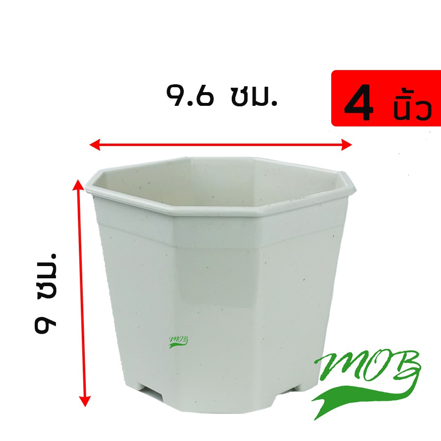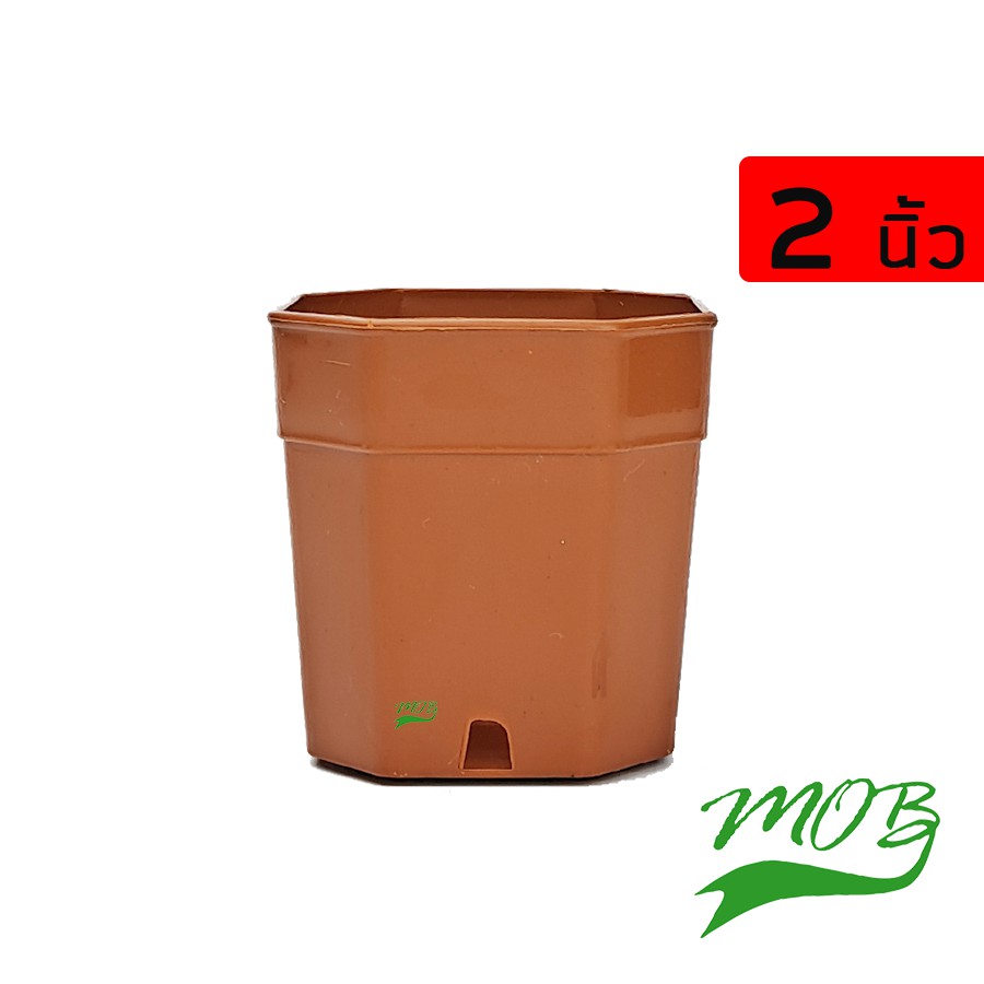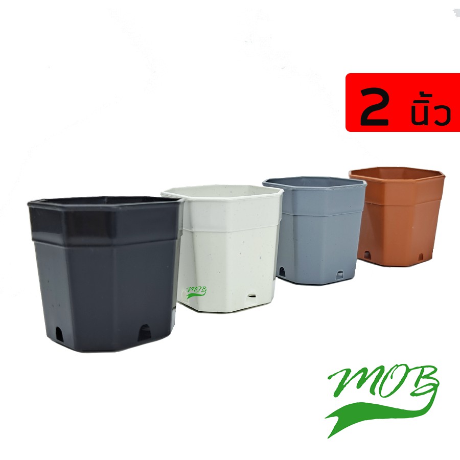 MOB กระถางพลาสติกแปดเหลี่ยม 2 นิ้ว 3 นิ้ว 4 นิ้ว สีอิฐ สีดำ สีขาว สีเทา คุณภาพดี