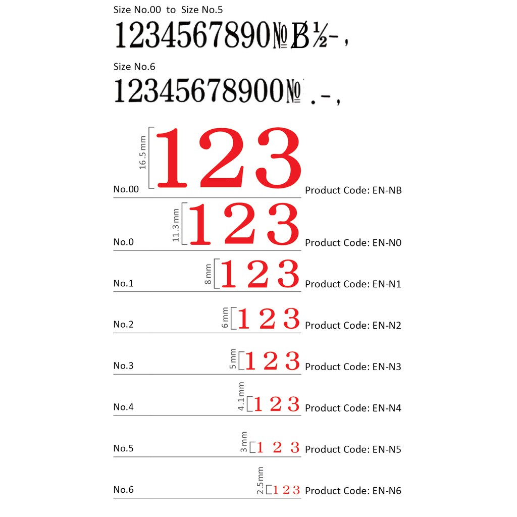 SANBY ตรายางประกอบได้ ชุดตัวเลข 15 ตัว เบอร์ #6 (ความสูง 2.5 มม.) ENDLESS STAMP Size No.6 (EN-N6)
