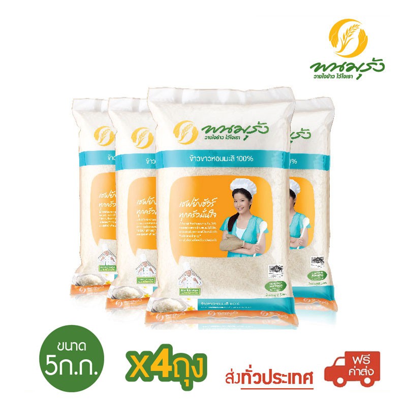 พนมรุ้ง ข้าวขาวหอมมะลิ 100% ขนาด 5 กก. จำนวน 4 ถุง