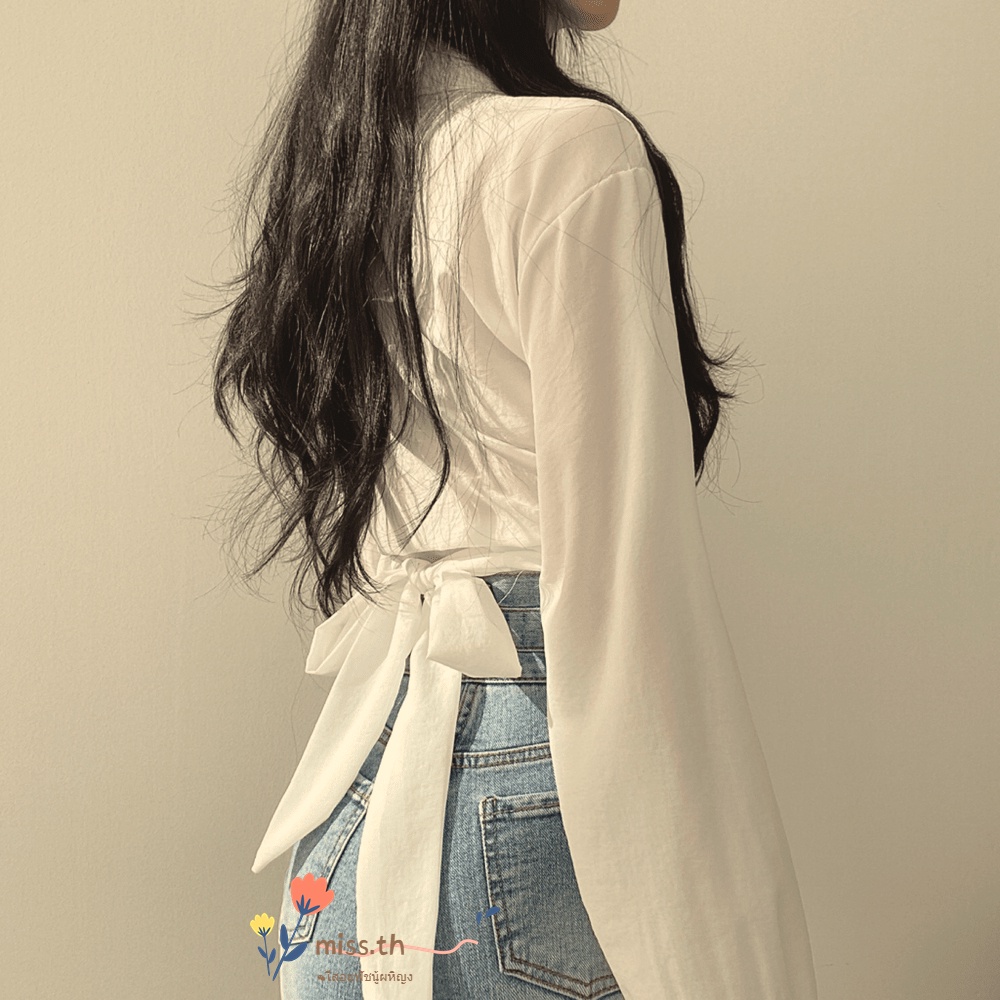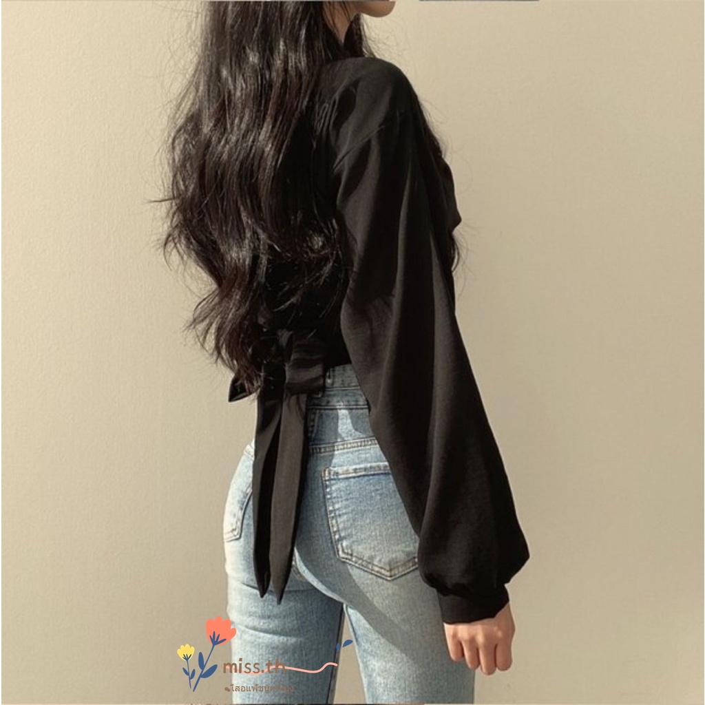 เสื้อเชิ้ตแขนยาว หลังผูกโบเซ็กซี่ แฟชั่นฤดูร้อน สไตล์เกาหลี สำหรับผู้หญิง