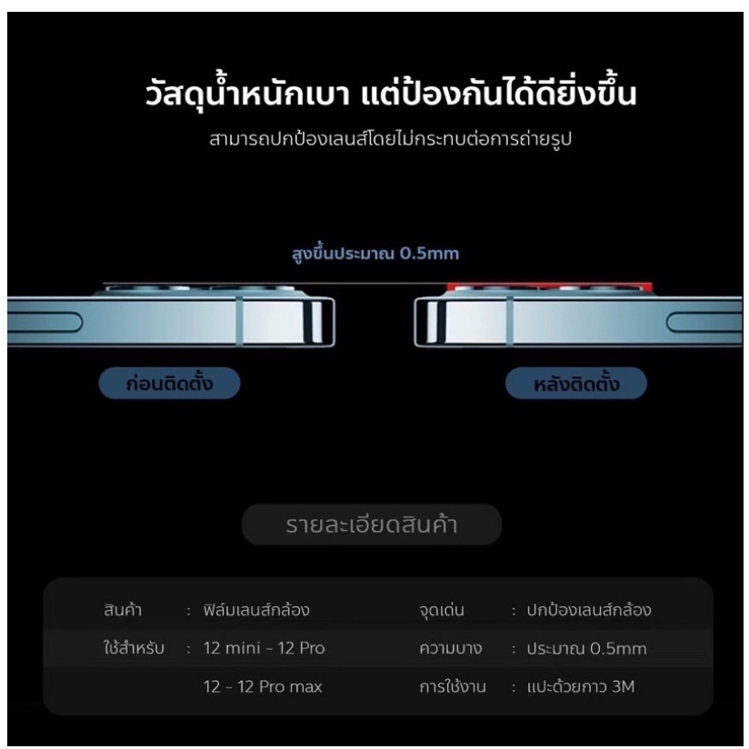 (ทั้งชุด)ฟิล์มเลนส์กล้องSingle Camera Filmฟิล์มกล้อง สำหรับไอโฟน12 ฟิล์มกล้องfor iphone 12/12mini/12 Pro/12 Promax 16pro