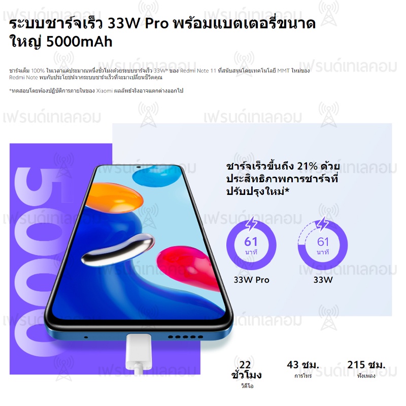 Xiaomi Redmi Note 11 (6+128 GB) เครื่องใหม่ รับประกันศูนย์ไทย 15 เดือน