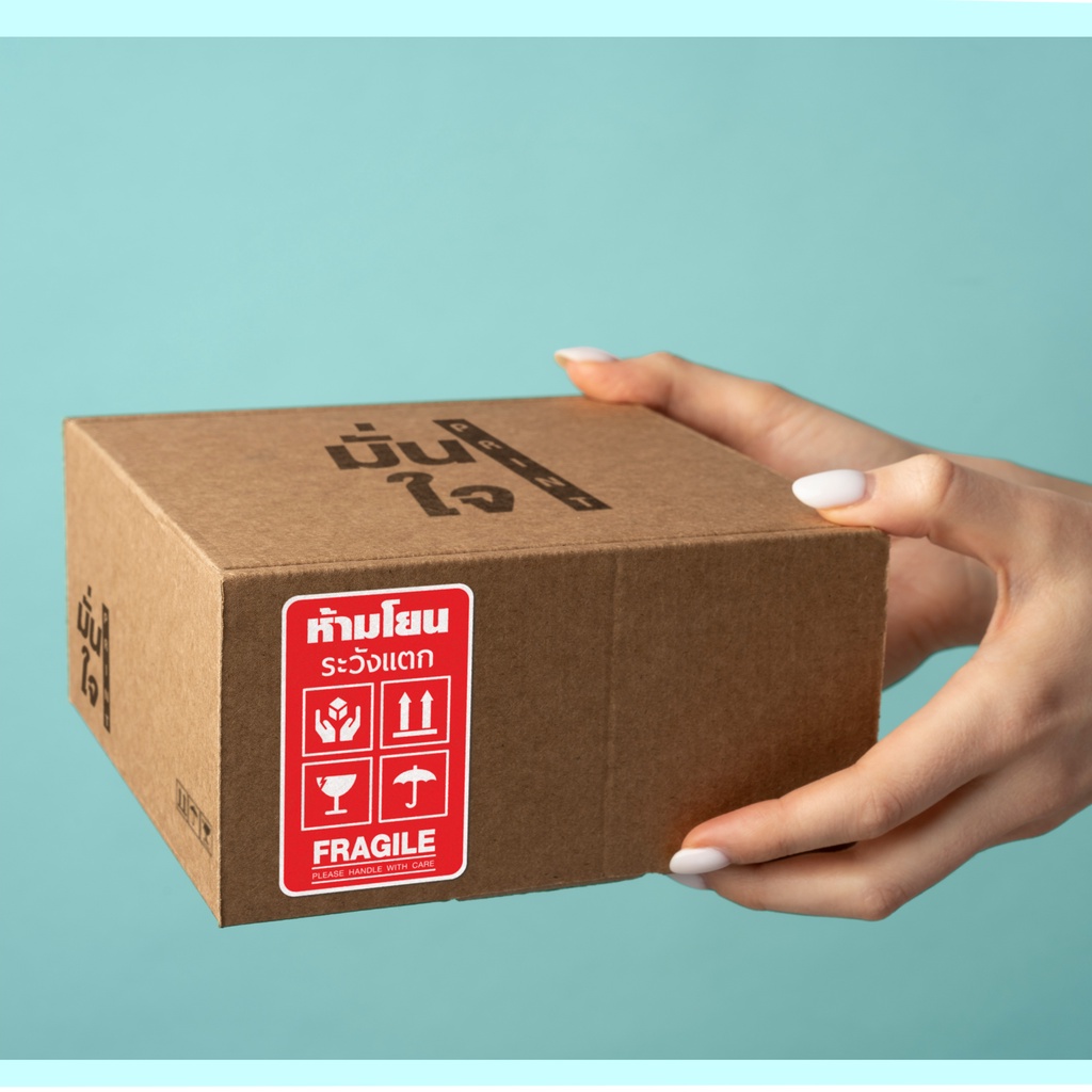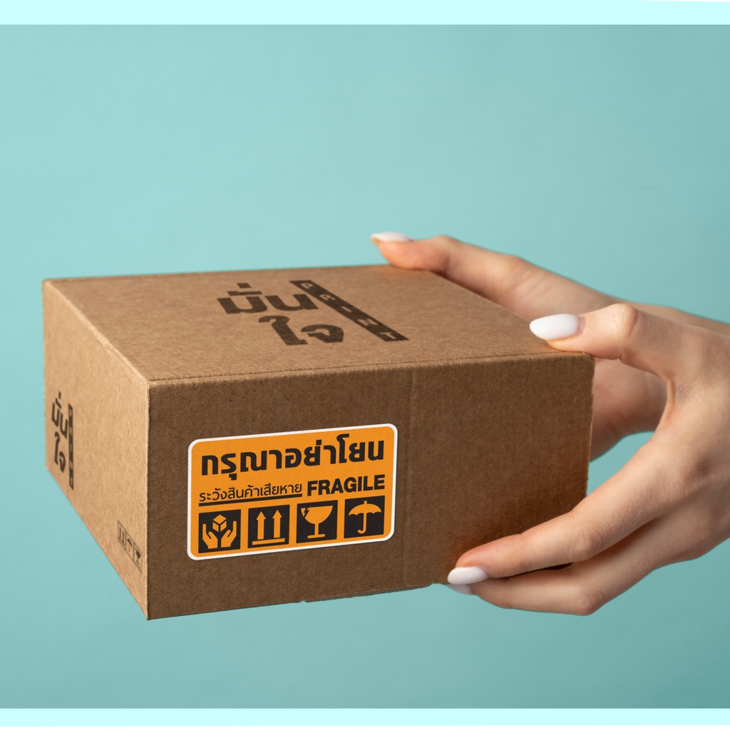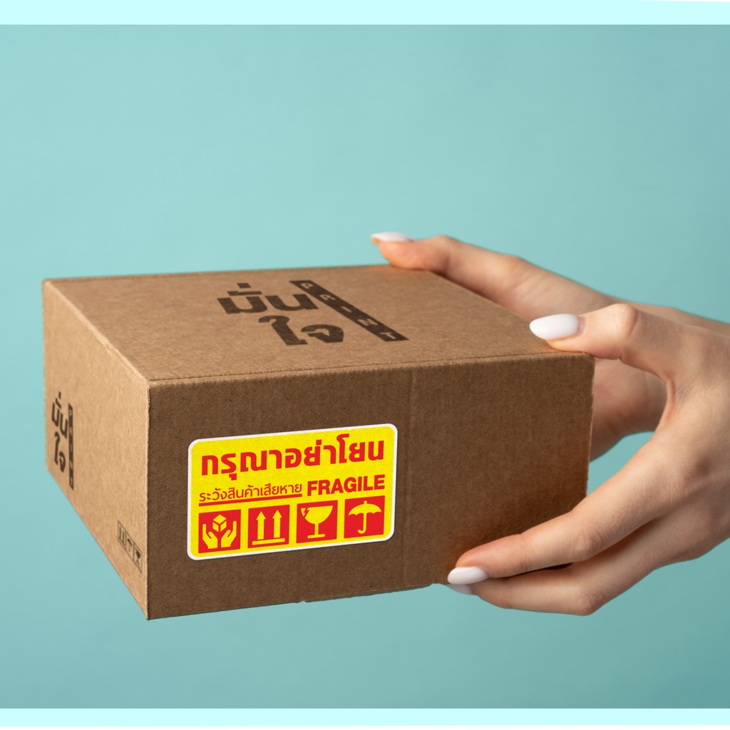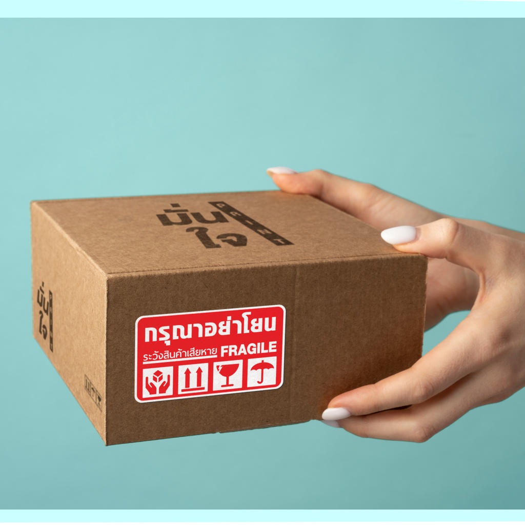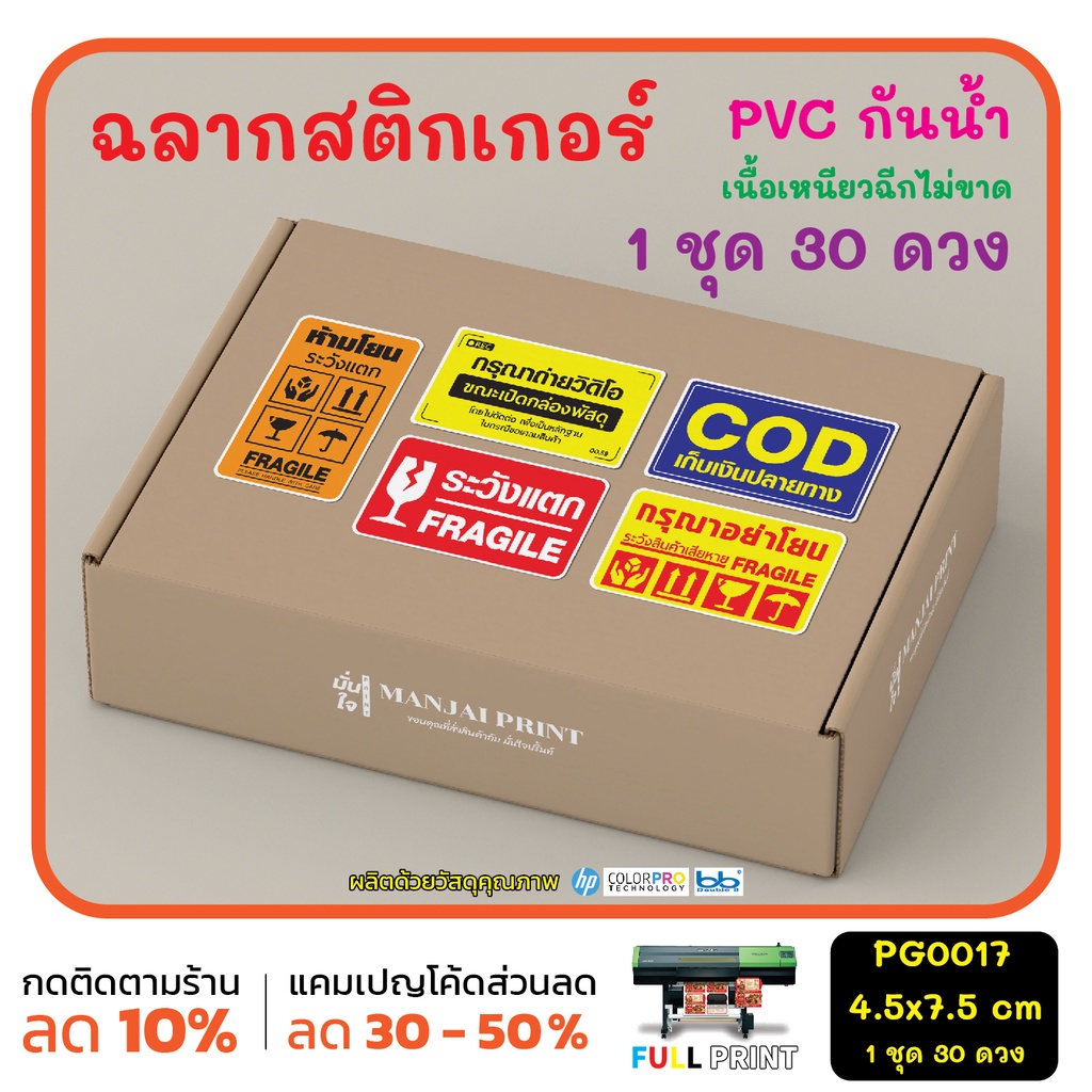 สติ๊กเกอร์ระวังแตก PVC กันน้ำ 30 ดวง สติกเกอร์วิดีโอ Fragile ระวังพัสดุเสียหาย ห้ามโยน ระวังแตก COD ชำระปลายทาง (PG0017)