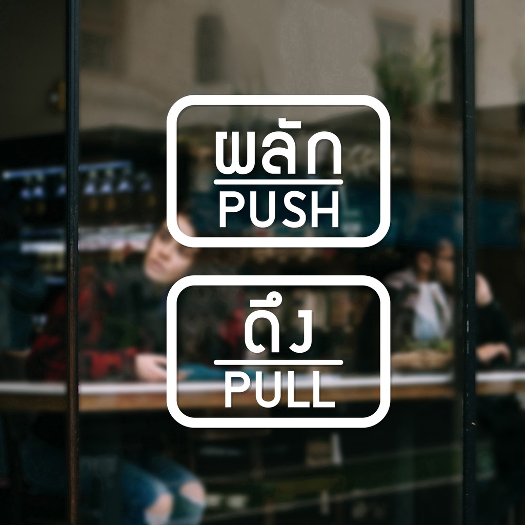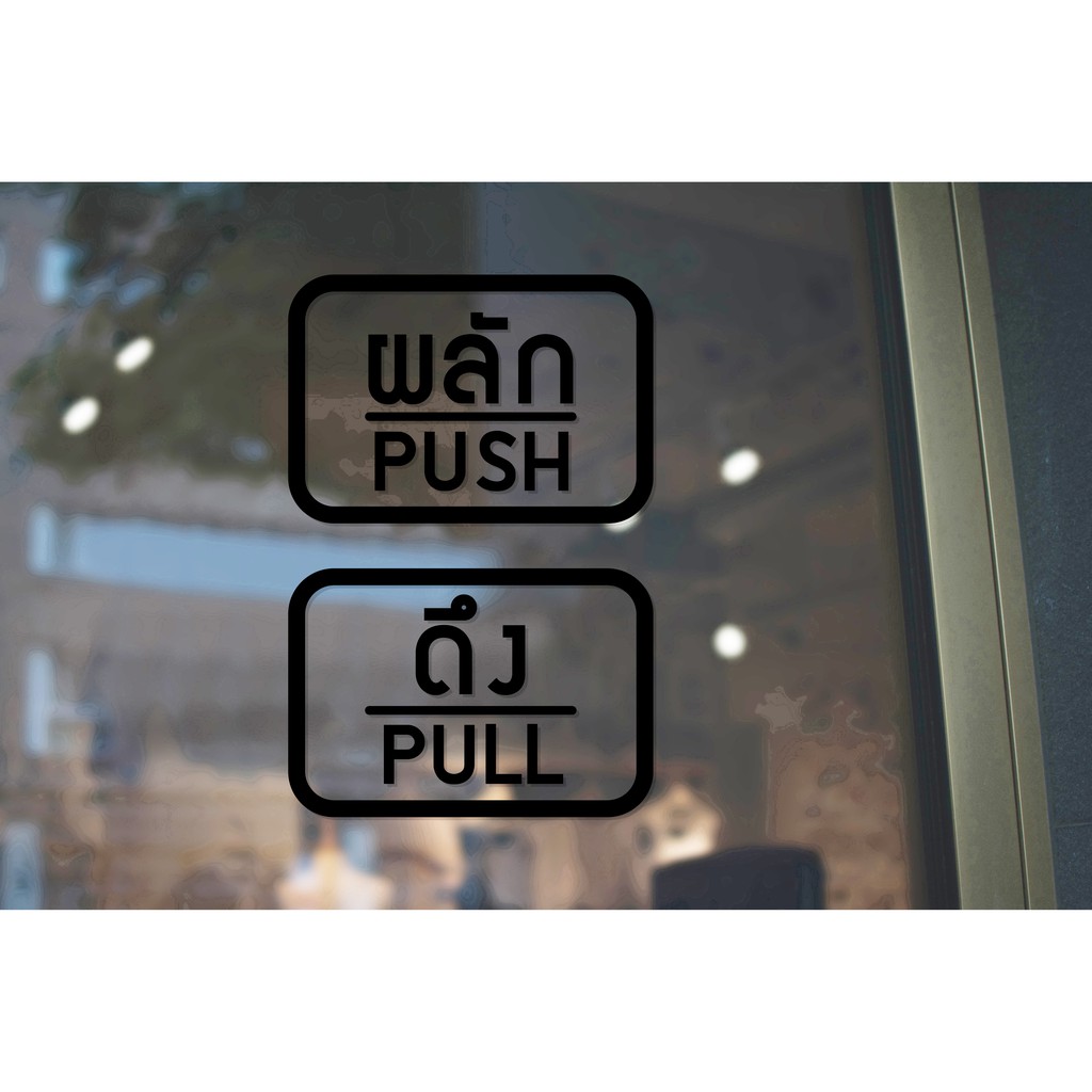 สติ๊กเกอร์ติดกระจก สติกเกอร์ร้าน PUSH-PULL ผลัก-ดึง ชุด 2 ชิ้น Size 15 x 10 cm.(G0023)