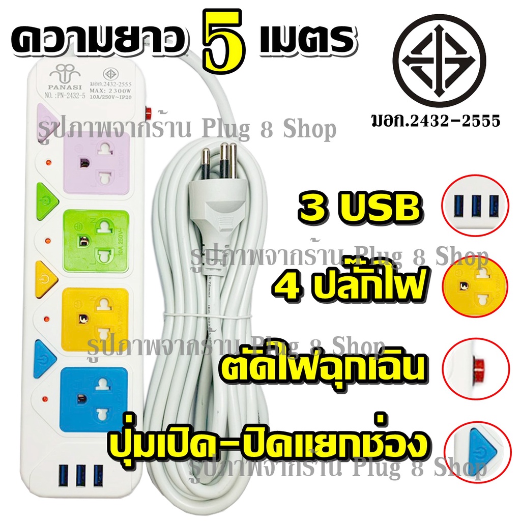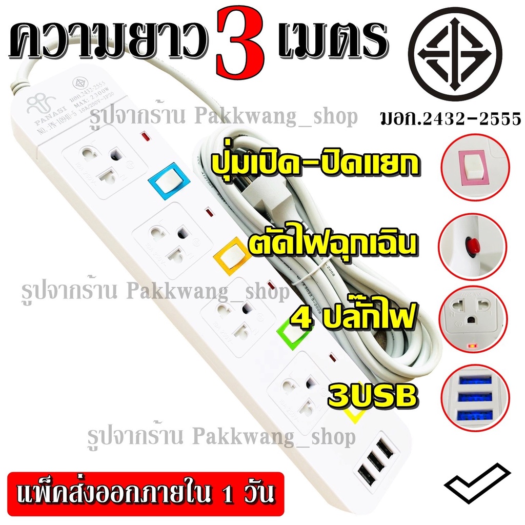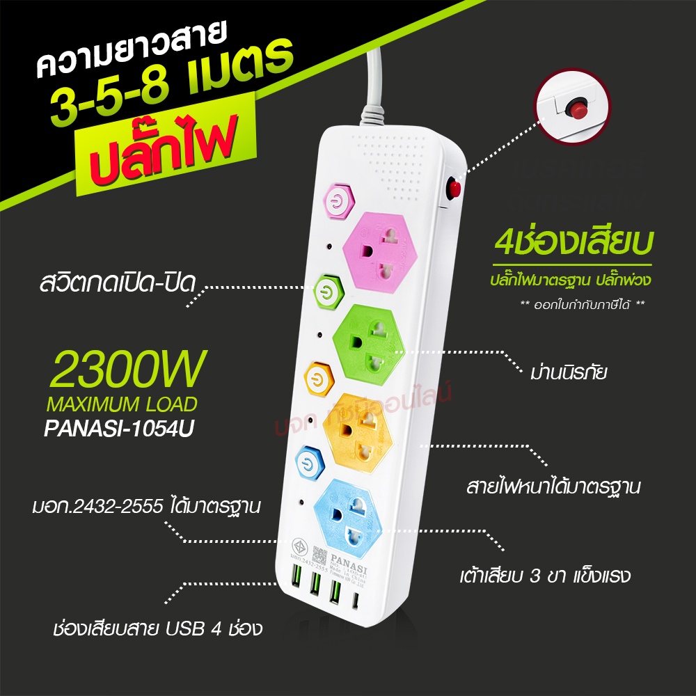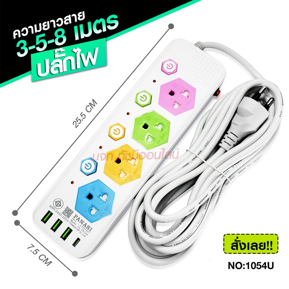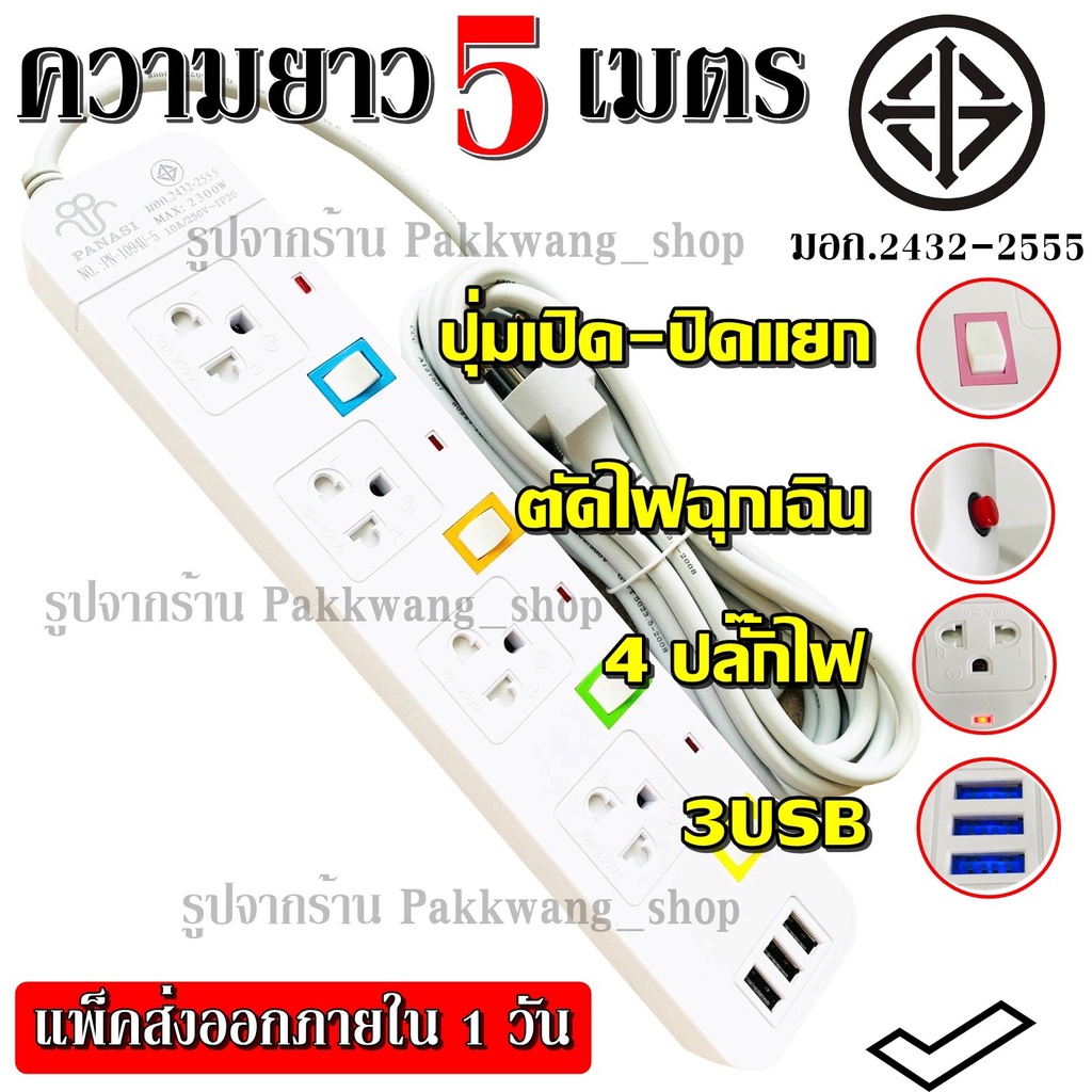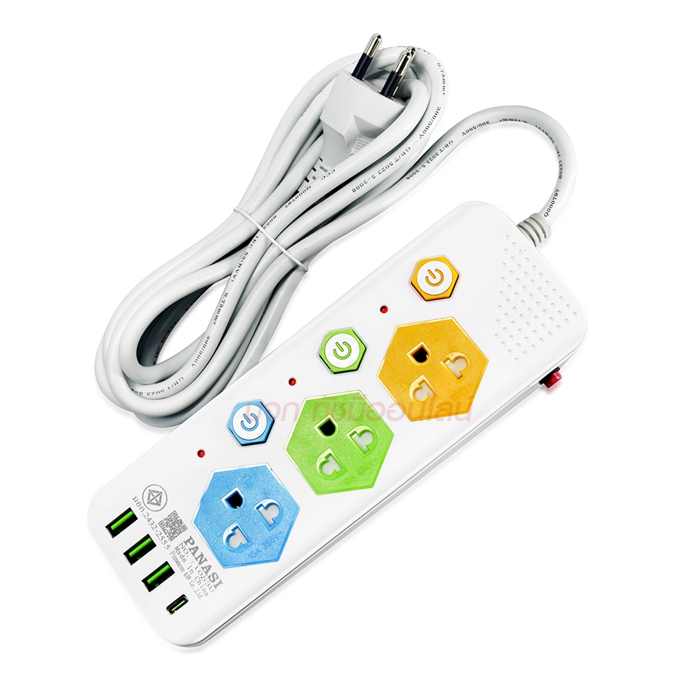 ส่งด่วน!! ปลั๊กไฟ ((4 ช่อง 3 USB 5เมตร และ 3เมตร)) 2300w PANASI รุ่น PN-1094U มีมาตราฐานไทยรองรับ