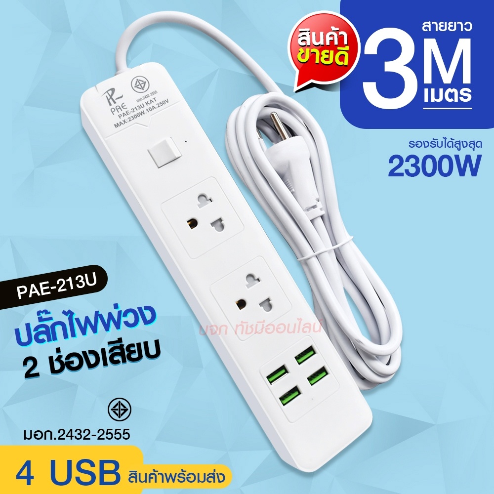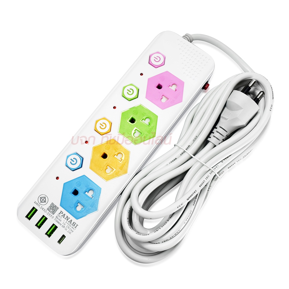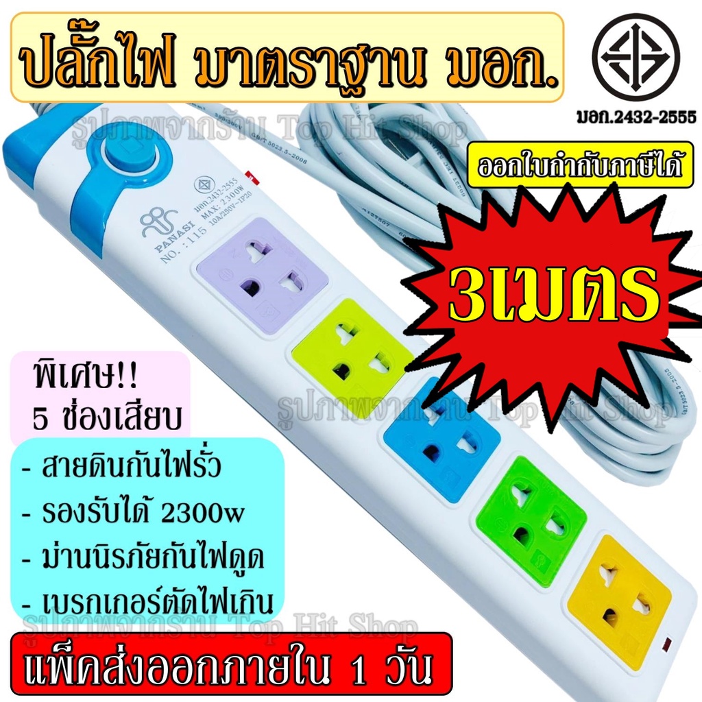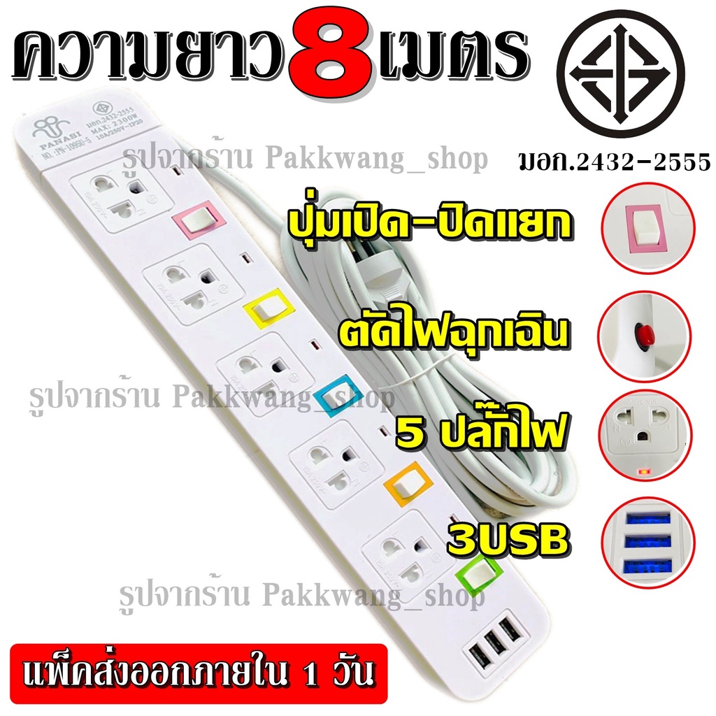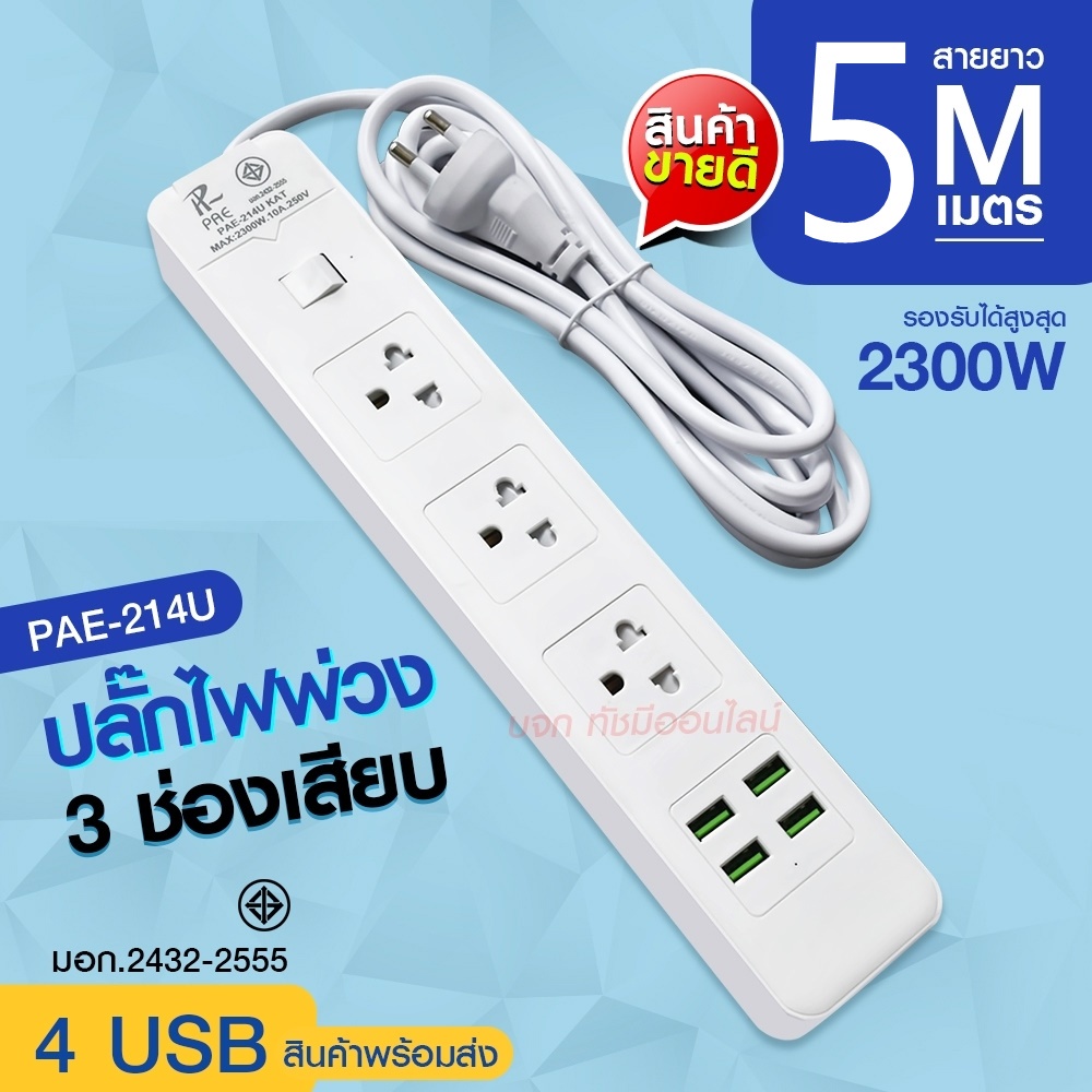 ส่งด่วน!! ปลั๊กไฟ ((4 ช่อง 3 USB 5เมตร และ 3เมตร)) 2300w PANASI รุ่น PN-1094U มีมาตราฐานไทยรองรับ