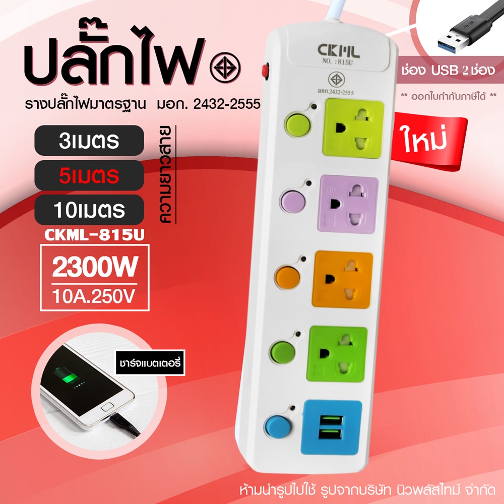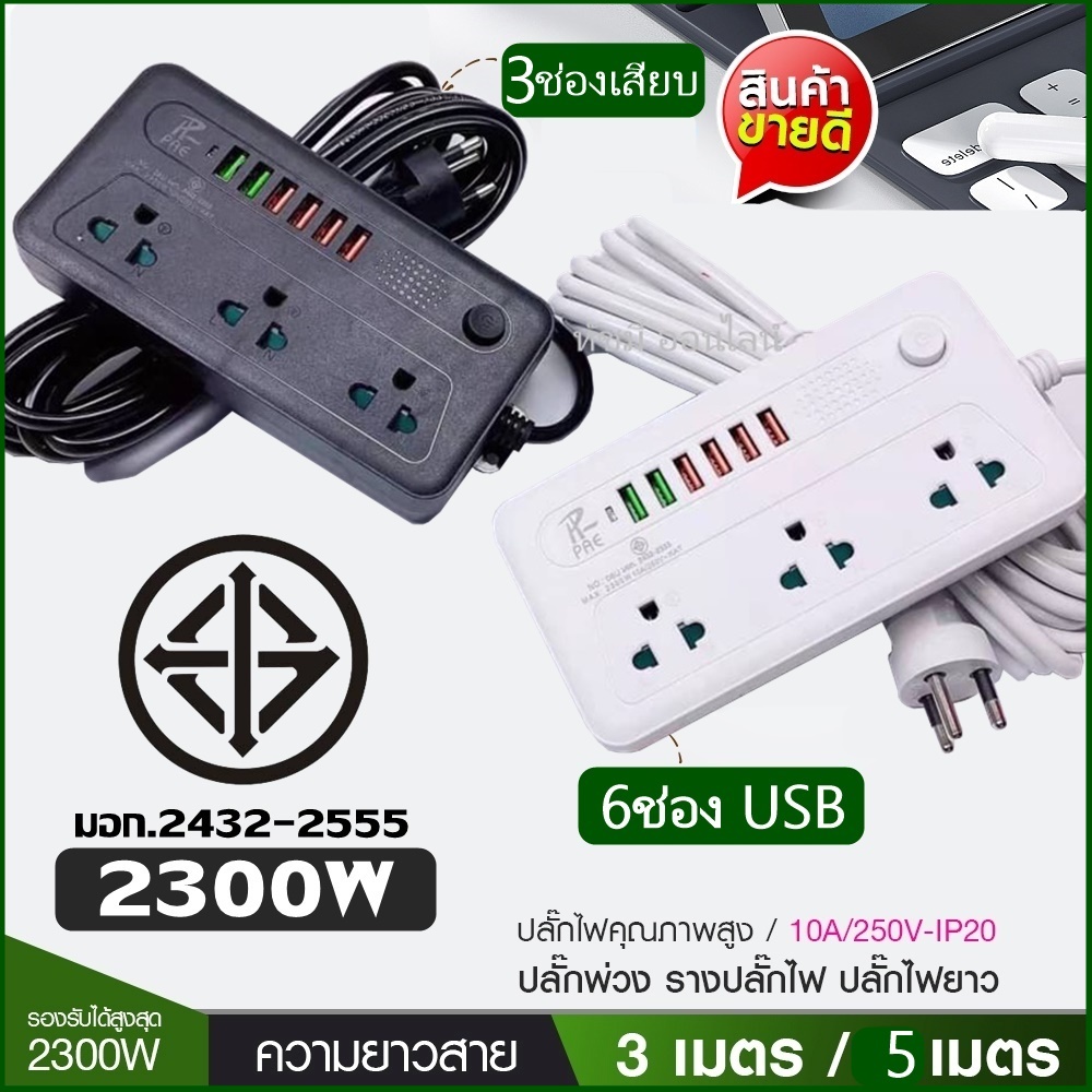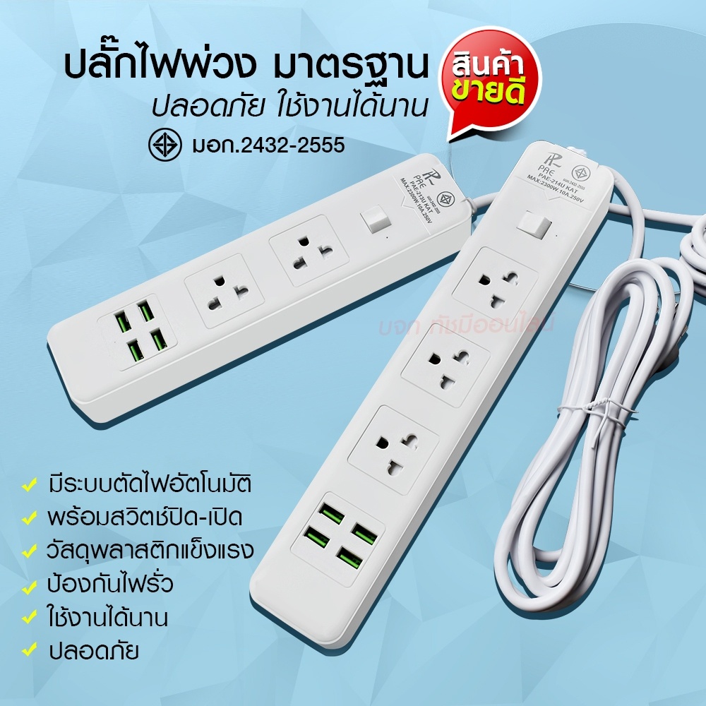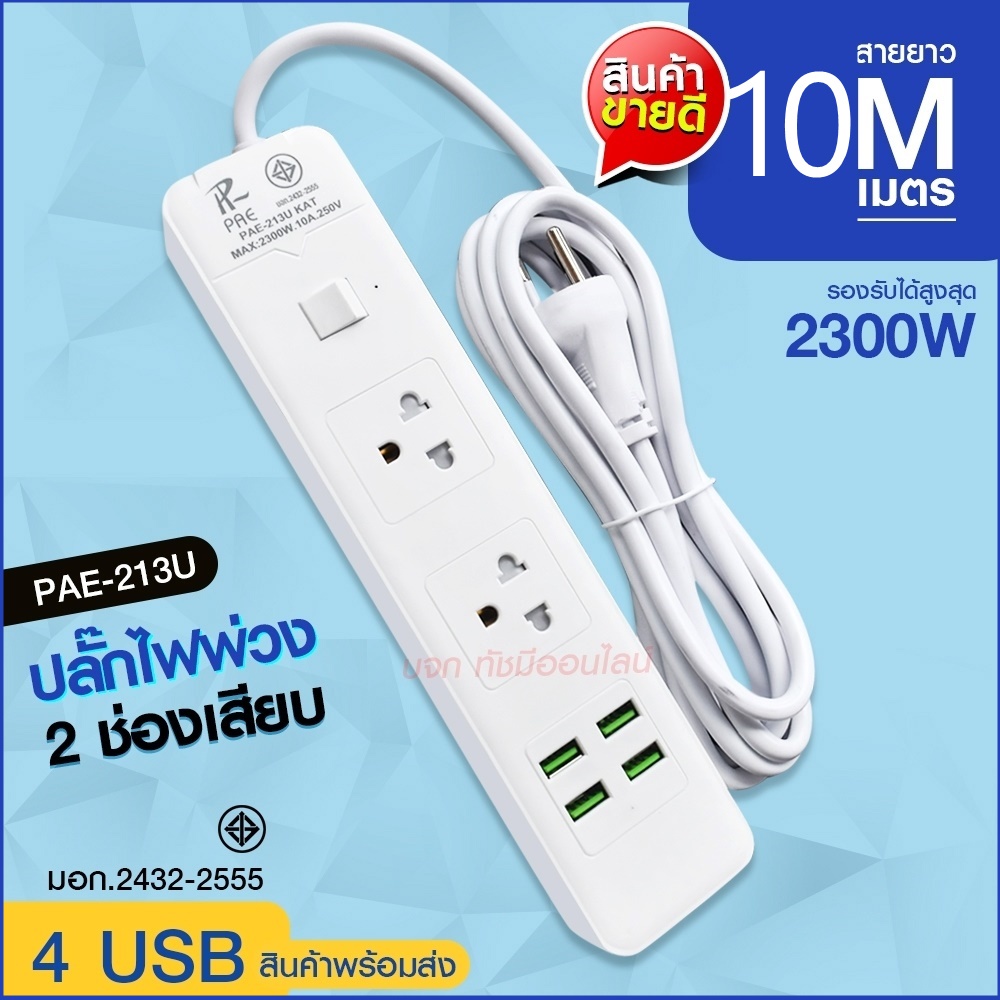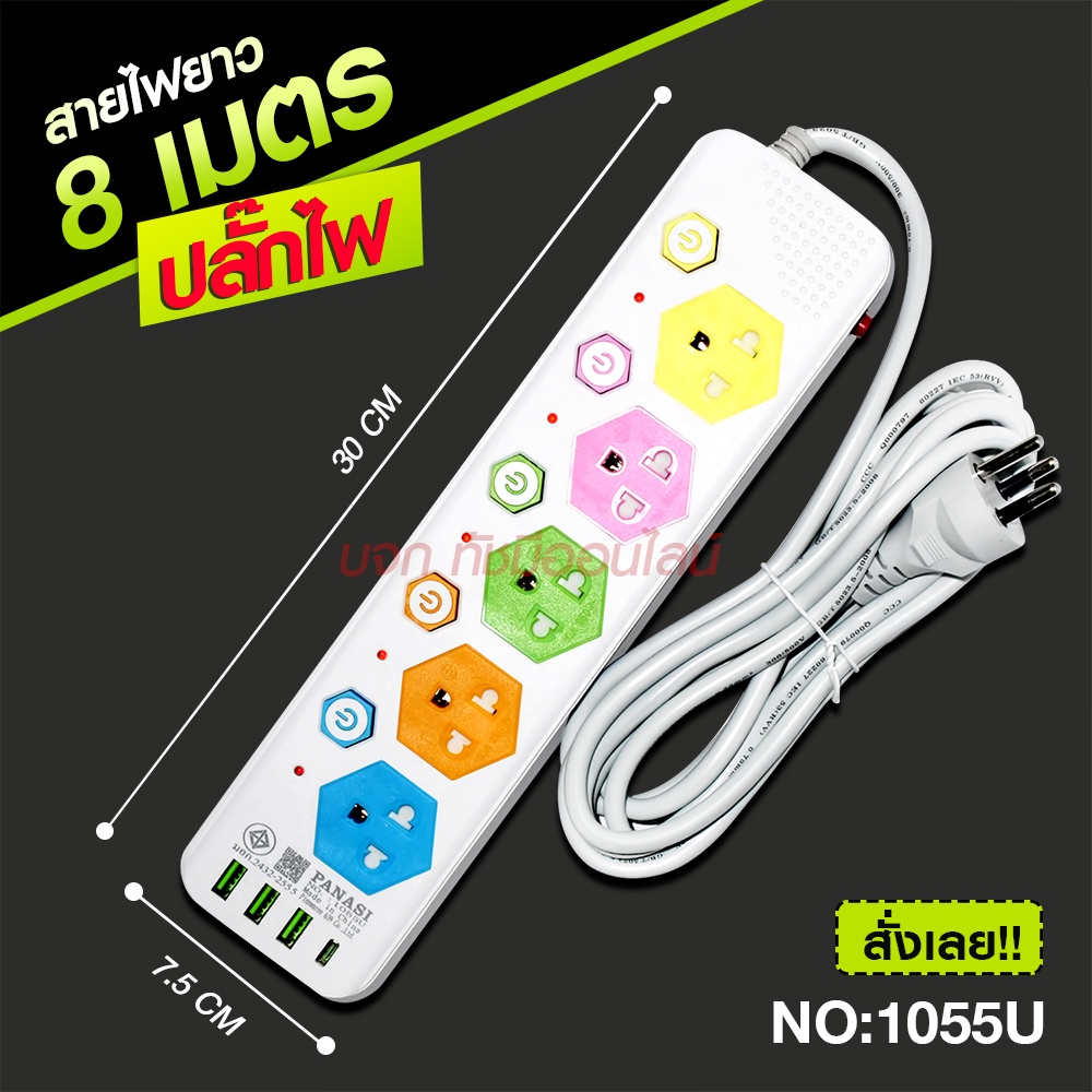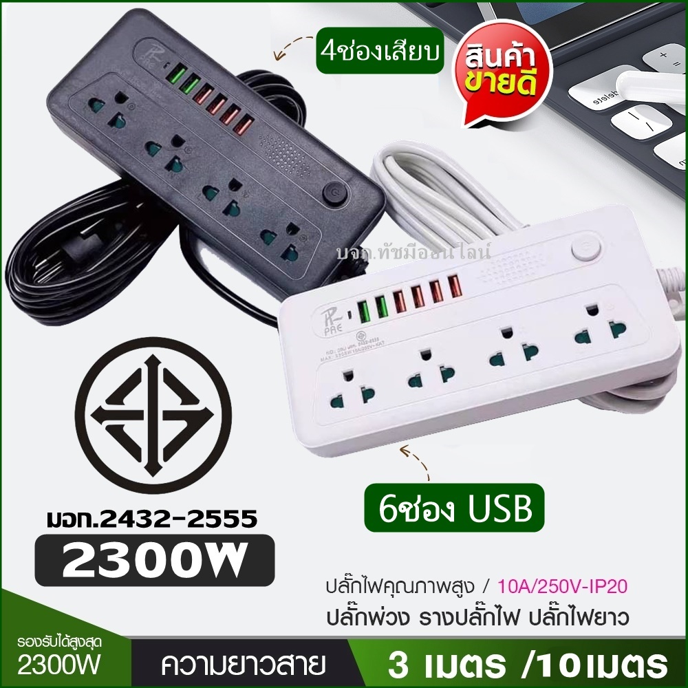 ส่งด่วน!! ปลั๊กไฟ ((4 ช่อง 3 USB 5เมตร และ 3เมตร)) 2300w PANASI รุ่น PN-1094U มีมาตราฐานไทยรองรับ