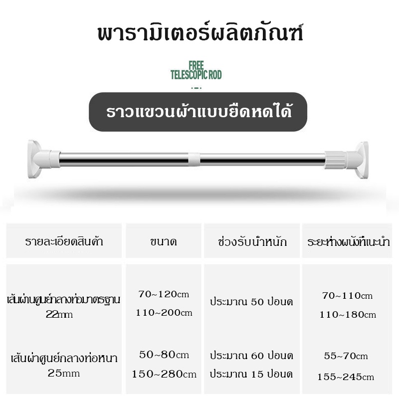 ราวแขวนผ้าในห้องน้ํา ไม่ต้องเจาะผนัง ราวผ้าม่านไม่ต้องเจาะ ปรับขนาด