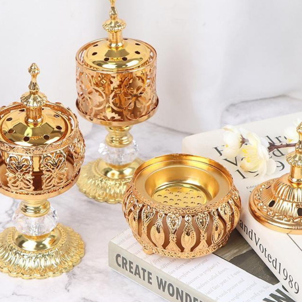 กระถางธูป แบบพกพา วินเทจ สไตล์อาหรับ โกลเด้น เตาอโรม่า พุทธศาสนา ที่ใส่กระถางไฟ กระถางธูปโลหะ ทาวเวอร์