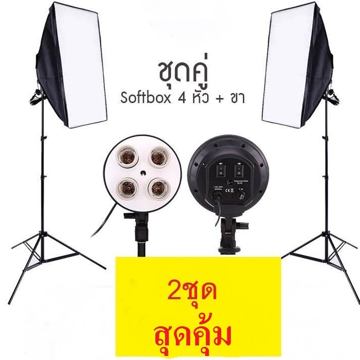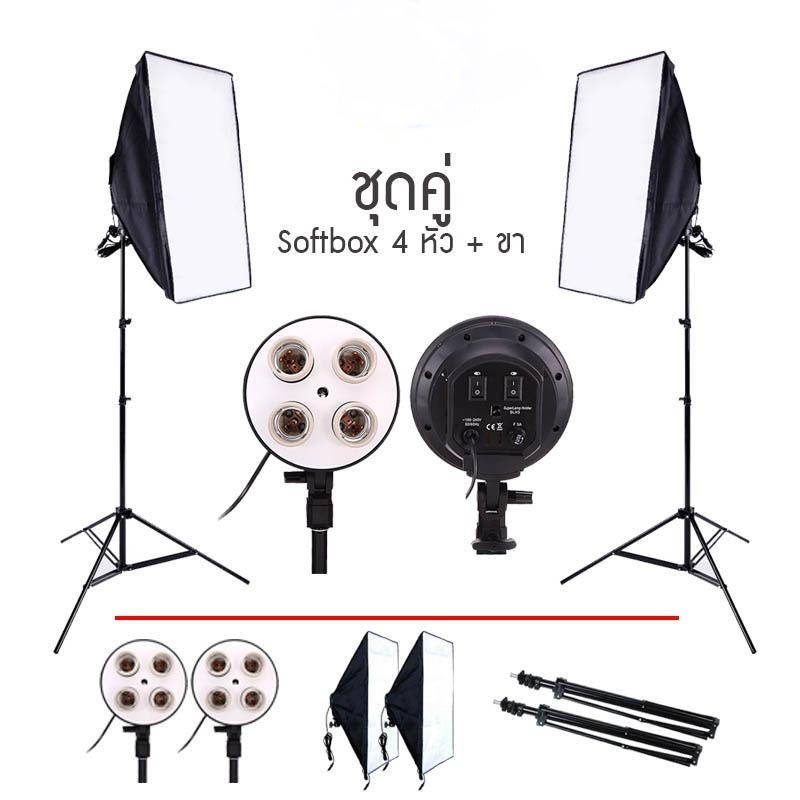 Softbox ไฟต่อเนื่อง ไฟสตูดิโอถ่ายภาพ 4 หัว softbox เซ็คคู่ 2 ตัว
