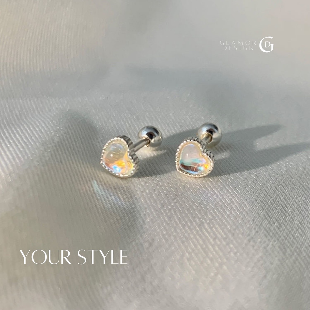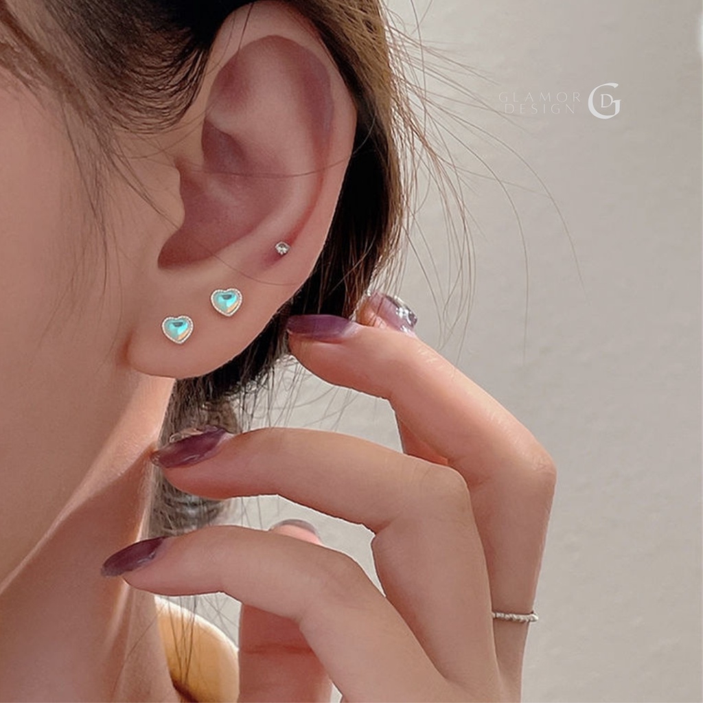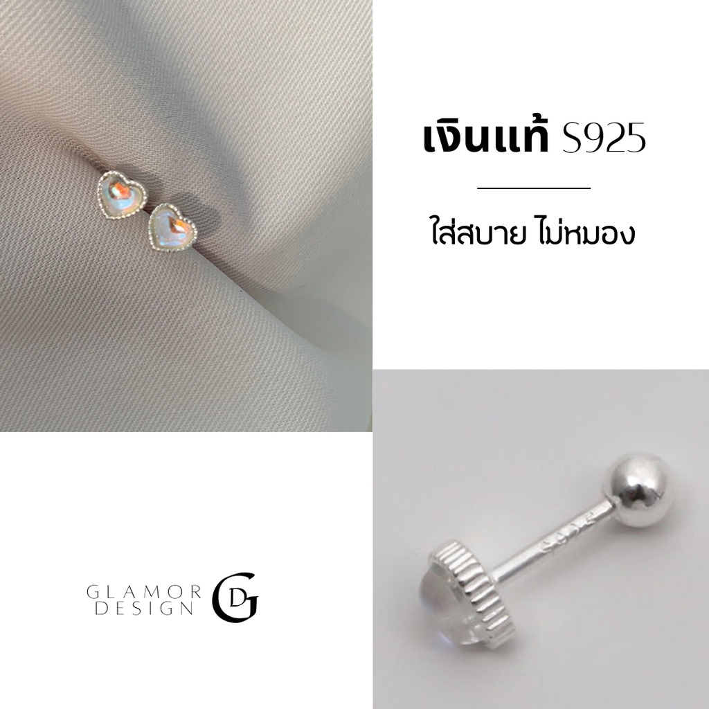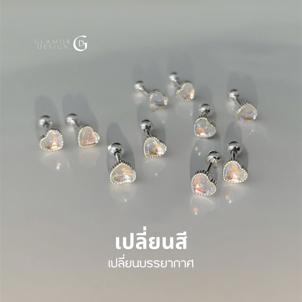 GLAMOR✨ต่างหูเปลี่ยนสี LOVE MOONLIGHT ต่างหูเงิน ตุ้มหูสวยๆ ต่างหูหัวใจ ต่างหูแฟชั่น ตุ้มหูเงินแท้ Valentine ของขวัญ