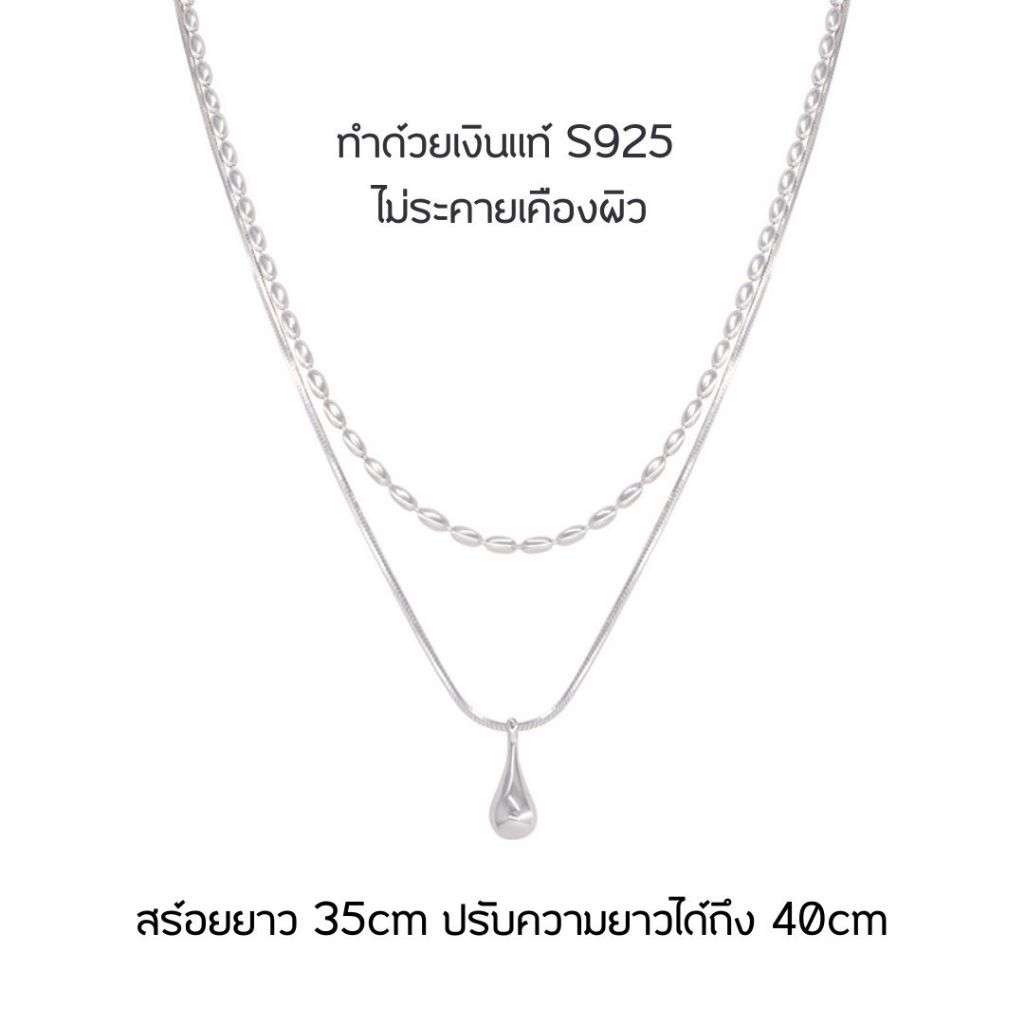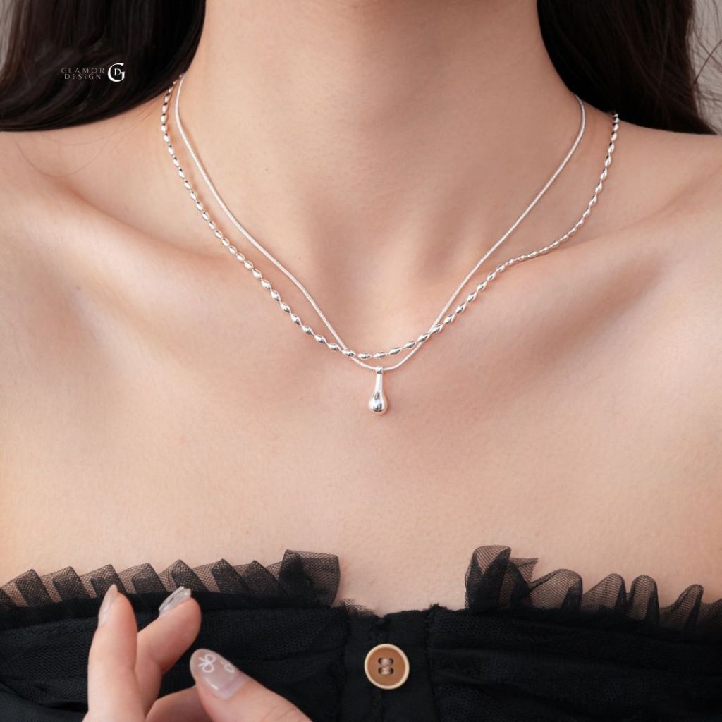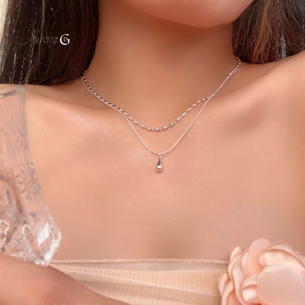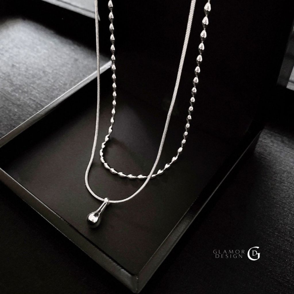 GLAMOR✨สร้อยคอเงิน Duo Droplet สร้อยคอเงินแท้925 สร้อยคอสองชั้น สไตล์เกาหลี สร้อยคอแฟชั่น Valentine ของข วัญ