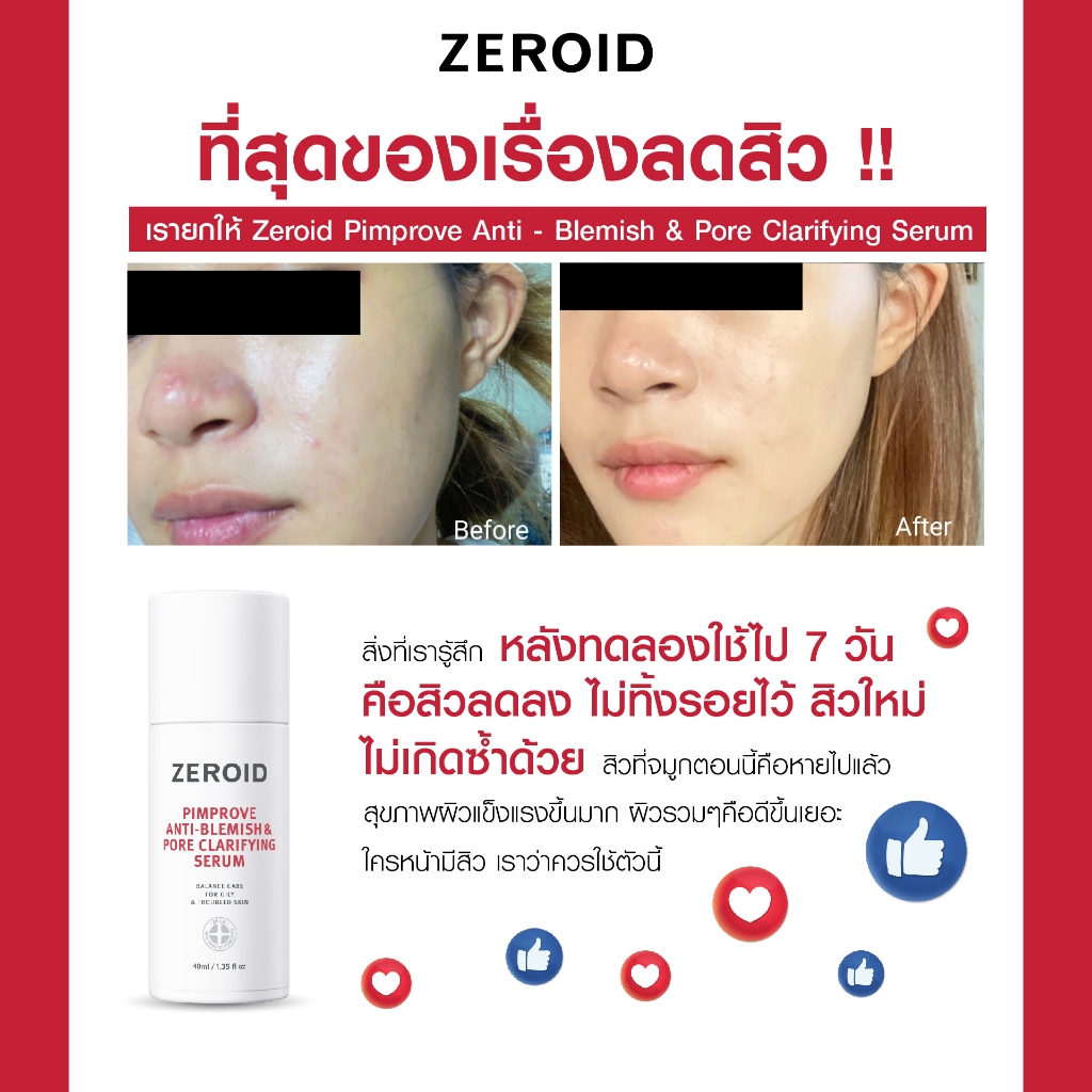 Zeroid Pimprove Anti - Blemish & Pore Clarifying Serum 40 ml เซรั่มจบปัญหาสิวครบวงจร พร้อมป้องกันสิวใหม่อย่างอ่อนโยน