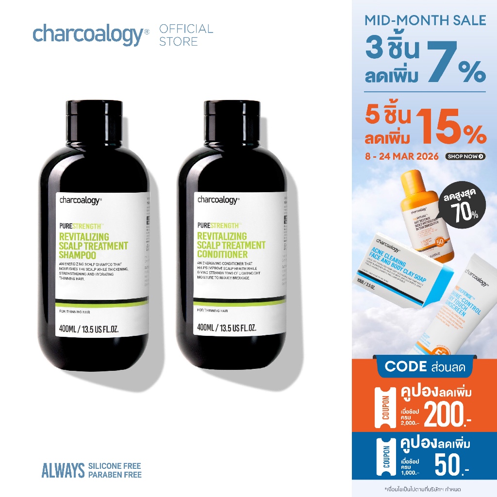 [สินค้าขายดี] ชุดแชมพูและครีมนวดผม สูตรปรับสภาพหนังศีรษะ ลดการหลุดร่วง Charcoalogy Revitalizing x 2