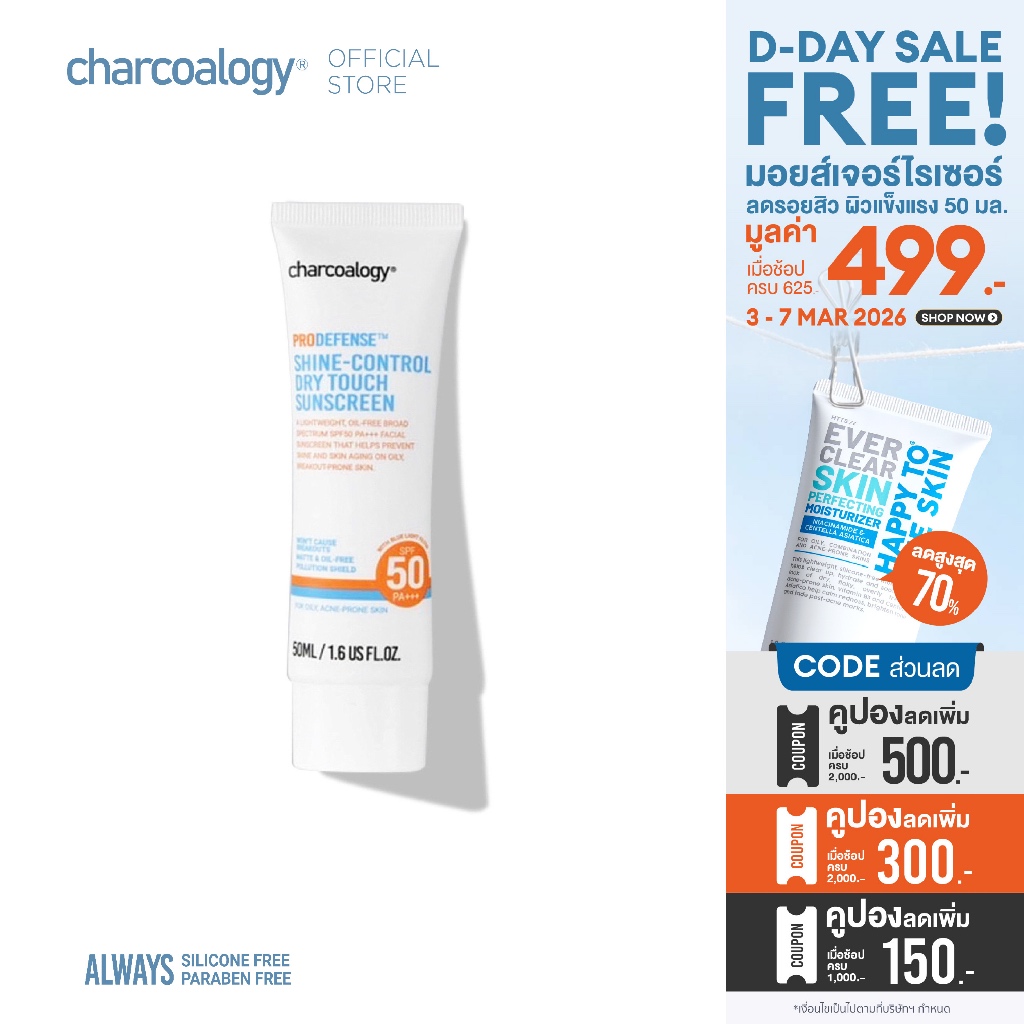 Charcoalogy เจลกันแดดถ่านไม้ไผ่คุมมัน ลดการเกิดสิว Sunscreen SPF50 PA+++