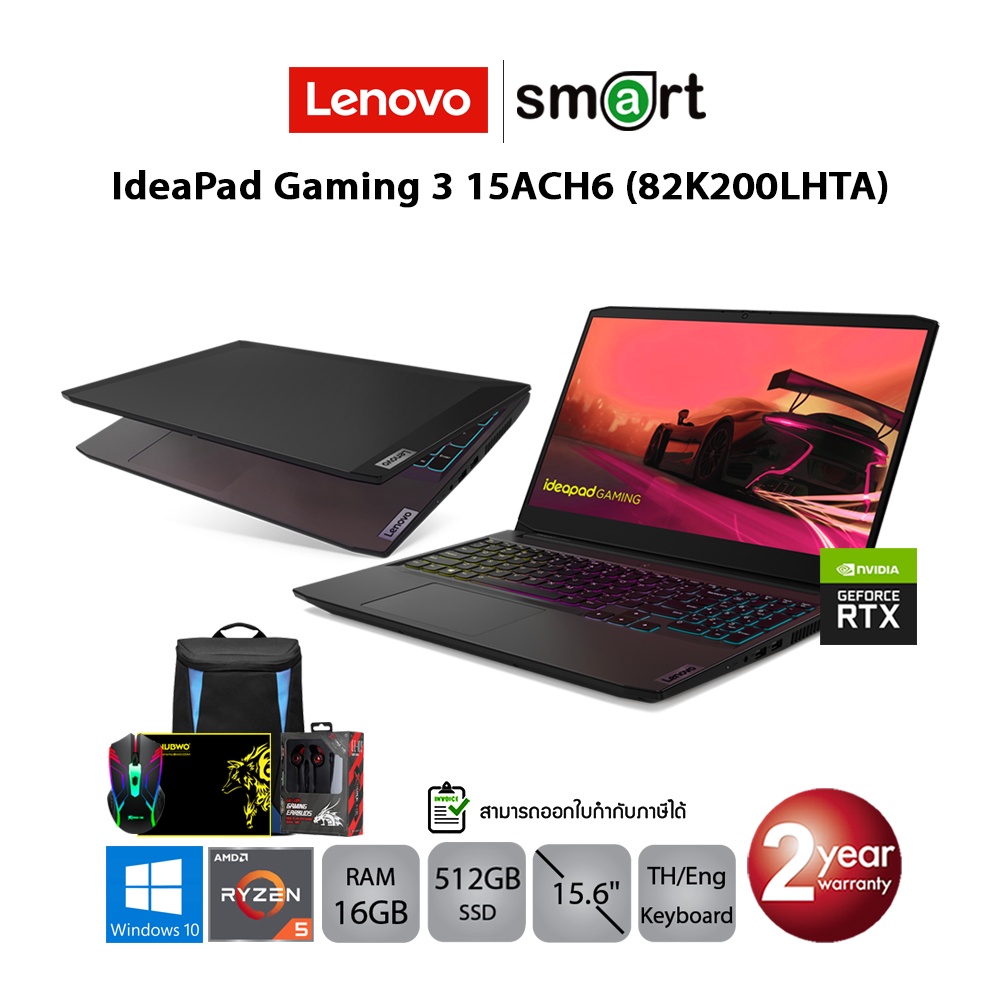 [ลด7% โค้ด77EL1500] Lenovo IdeaPad Gaming 3 15ACH6 (82K200LHTA) Ryzen5 5600H/RTX3060/16GB/512GB/15.6/Win10(Shadow Black)