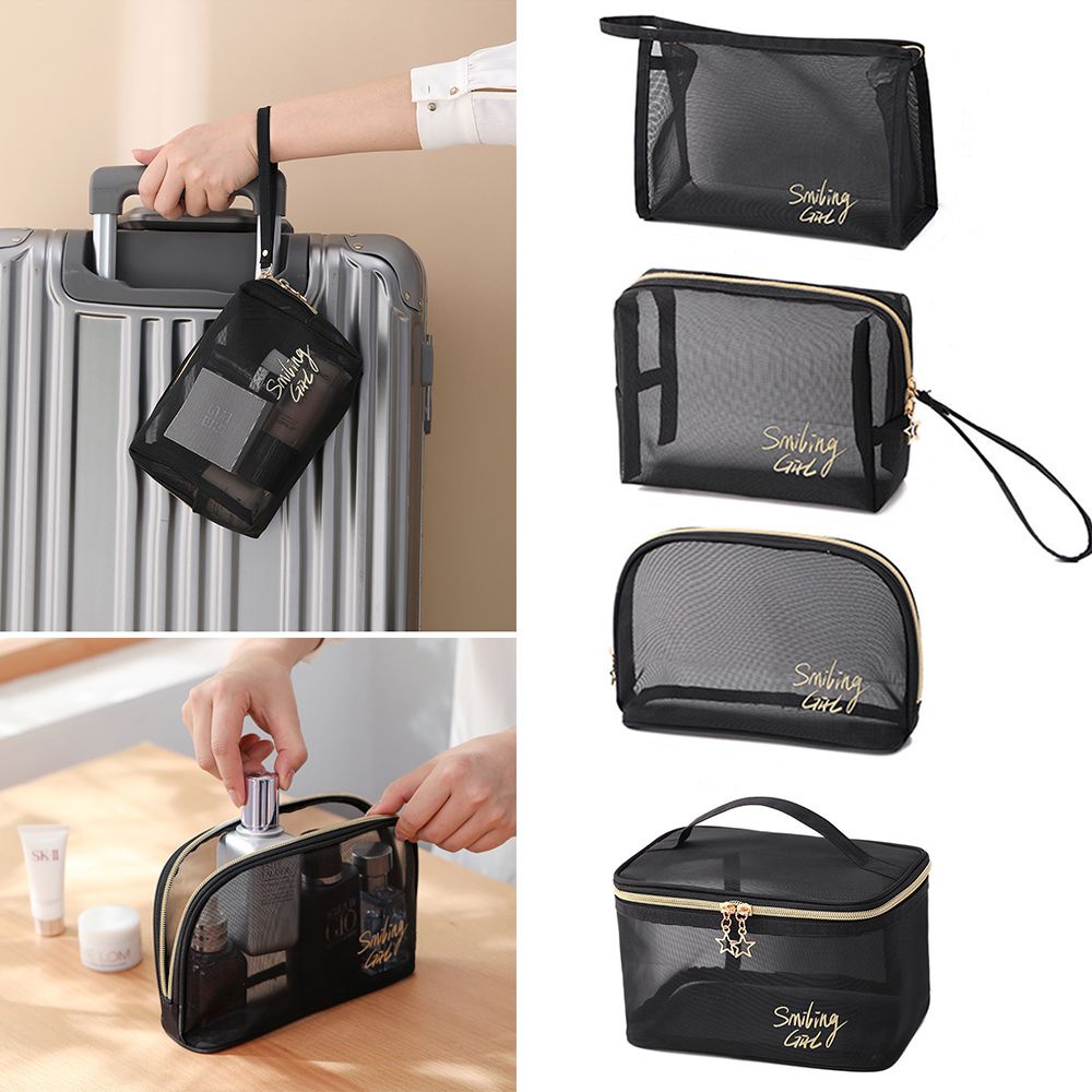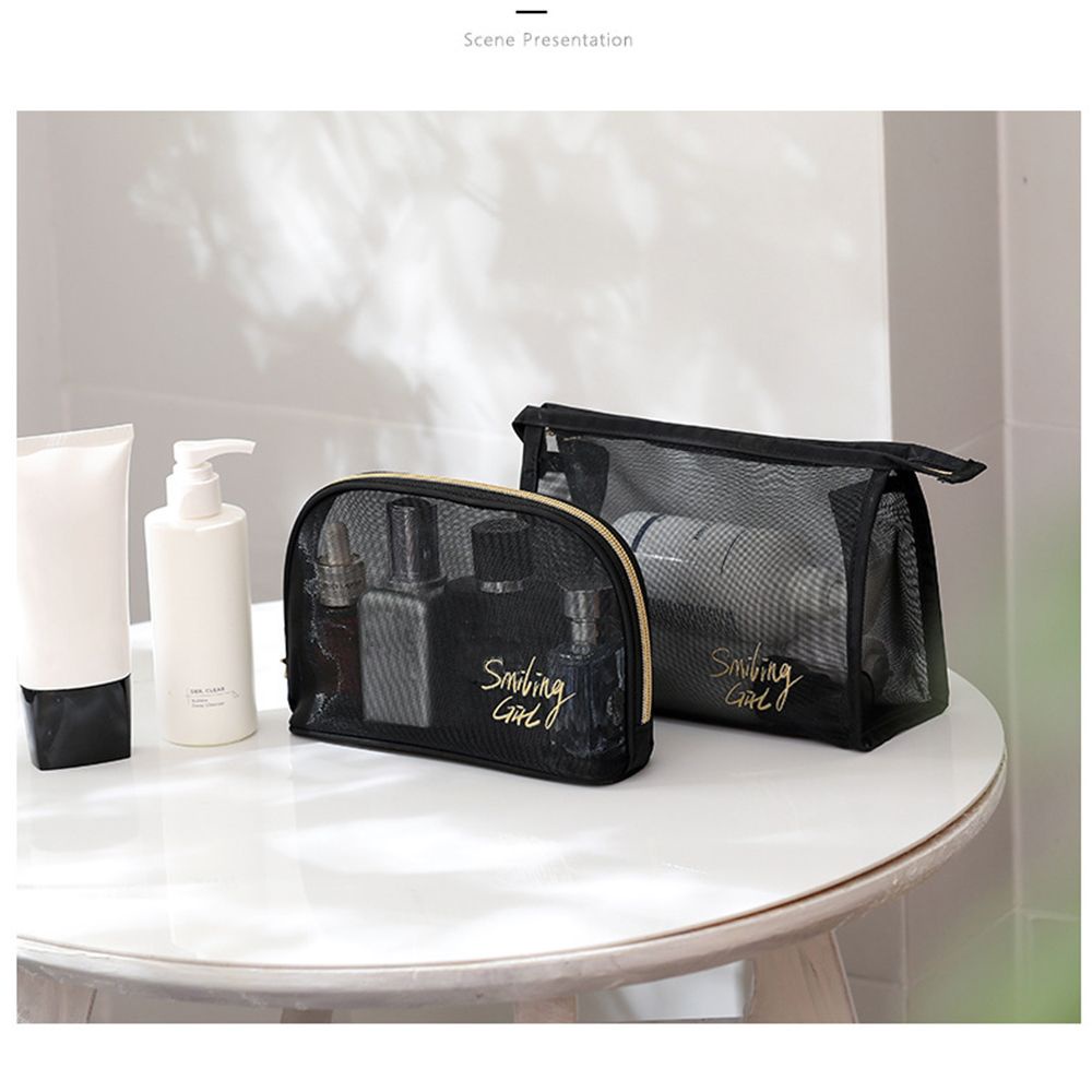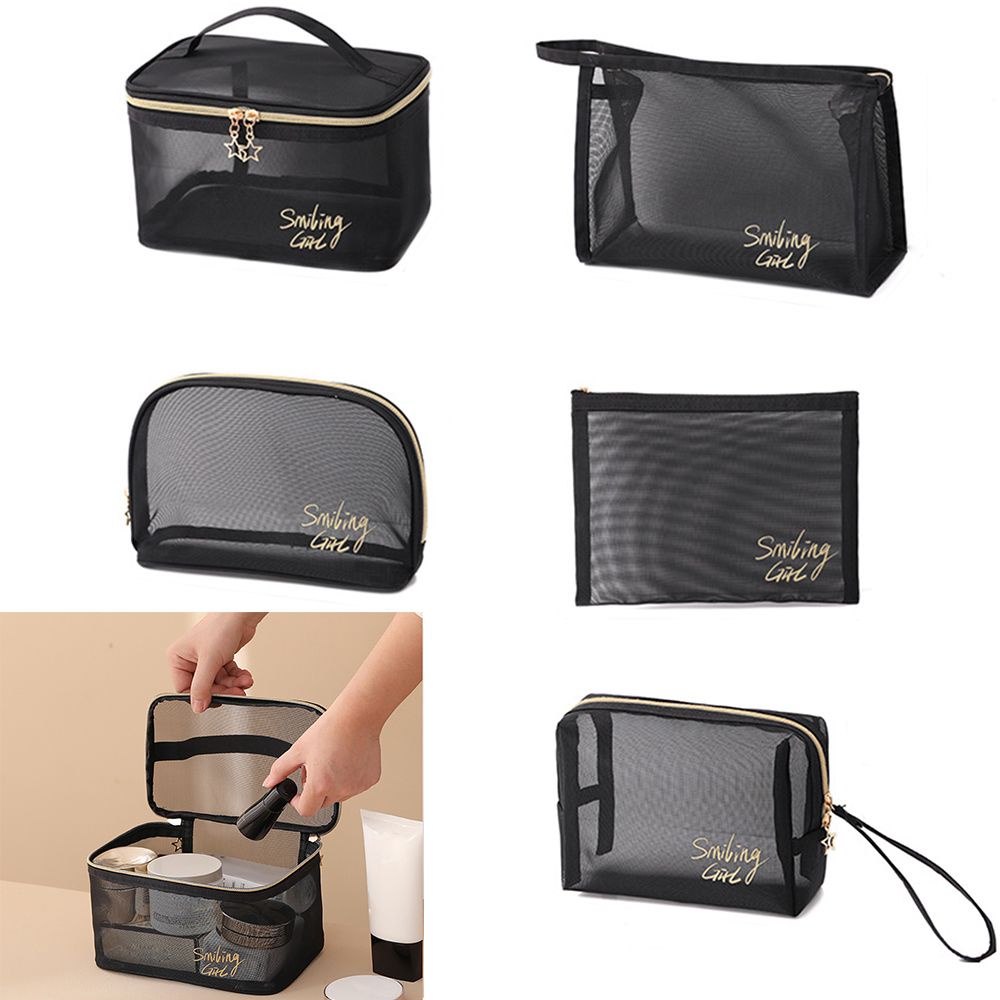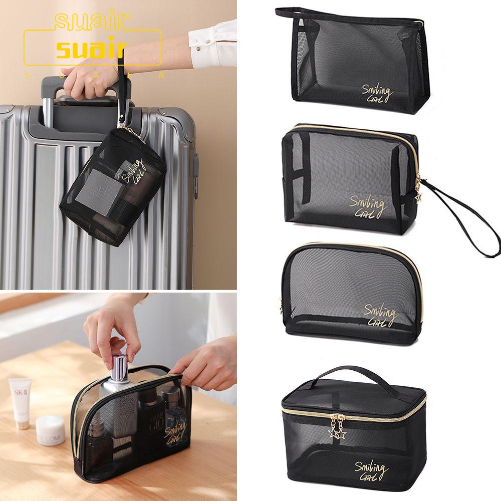 Subei กระเป๋าเครื่องสําอาง ผ้าตาข่ายใส สีดํา ขนาดใหญ่ 1/5 ชิ้น