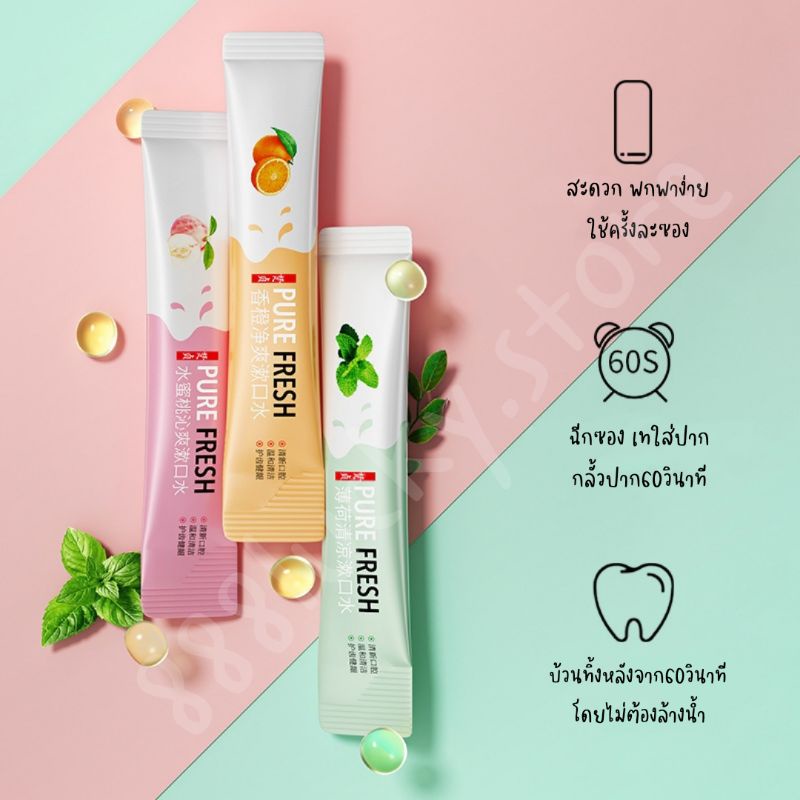 น้ำยาบ้วนปาก ซองสุดฮิต🍑กลิ่นผลไม้หอมสดชื่น🍊🍇 สะดวกพกพาง่ายไปได้ทุกที่ ลดกลิ่นปาก✨เพิ่มความมั่นใจ เพิ่มเสน่ห์ให้กับตัวคุณ