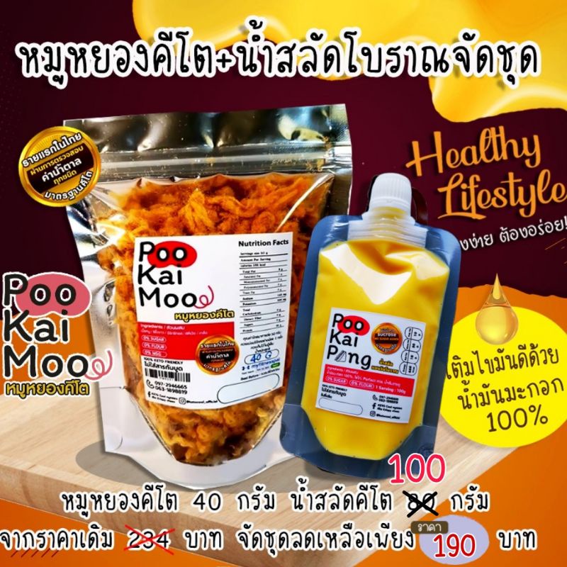 KETO หมูหยองคีโต 40 g+น้ำสลัดคีโตโบราณ 100g จัดชุดเข้าเซ็ท คีโต100% ไม่มีน้ำตาล คีโตกินไ ด้ ขนมคีโต