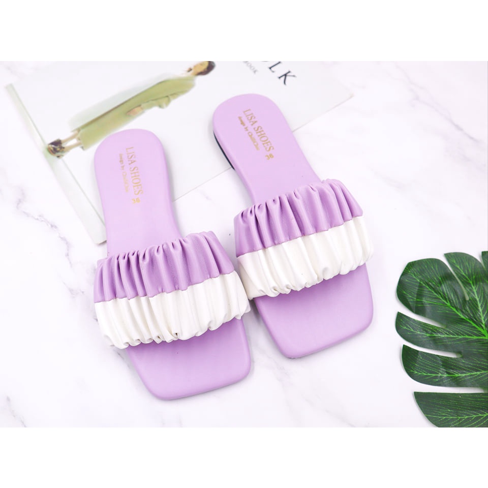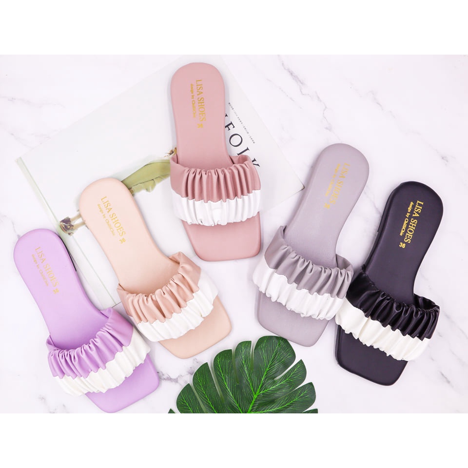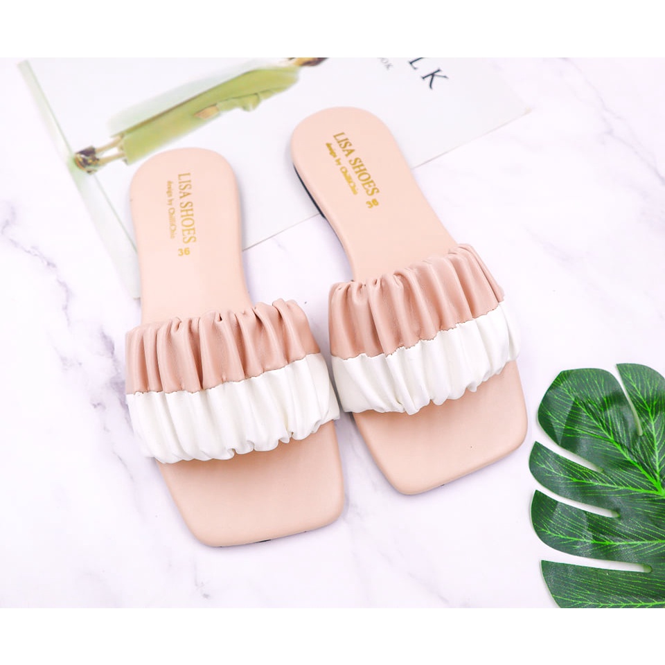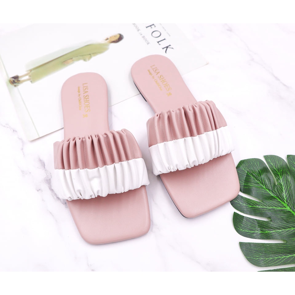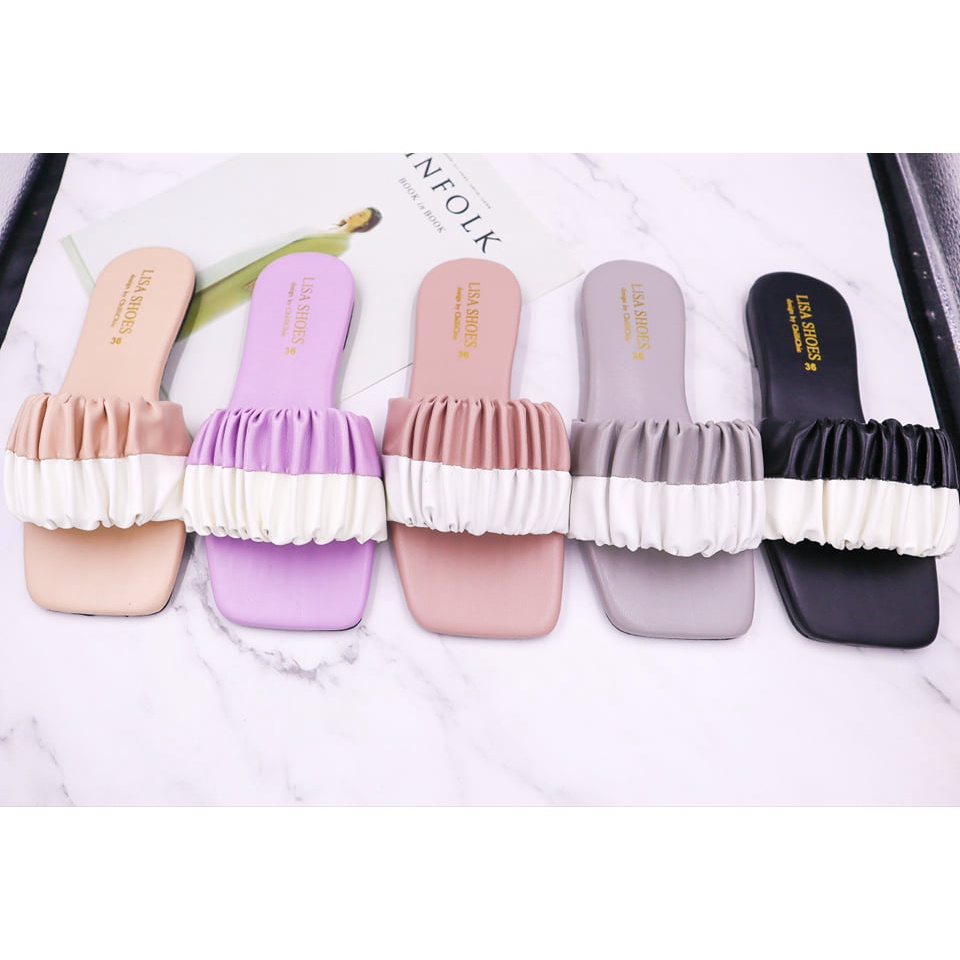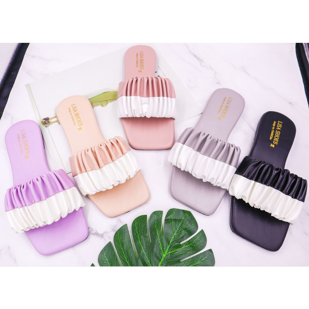 🌈รองเท้าแตะจีบkorea ทูโทนสายรุ้ง🌈 แบรนด์Lisa shoes(L26) งานสั่งตัดหน้าย่นขายดีสุดๆสีหวานน่ารักมากกก ต้องมีติดบ้านจ้า
