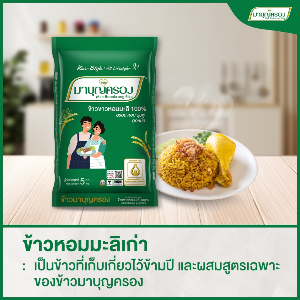 มาบุญครอง ข้าวหอมมะลิ 100% ถุงเขียว ขนาด 5 กก. (จำนวน 3 ถุง)