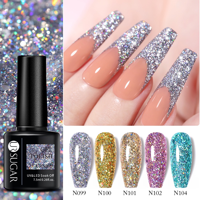 Ur SUGAR กลิตเตอร์เลื่อมเจลเล็บวานิช Bling แช่ออกจากเล็บ เจลเล็บยูวี