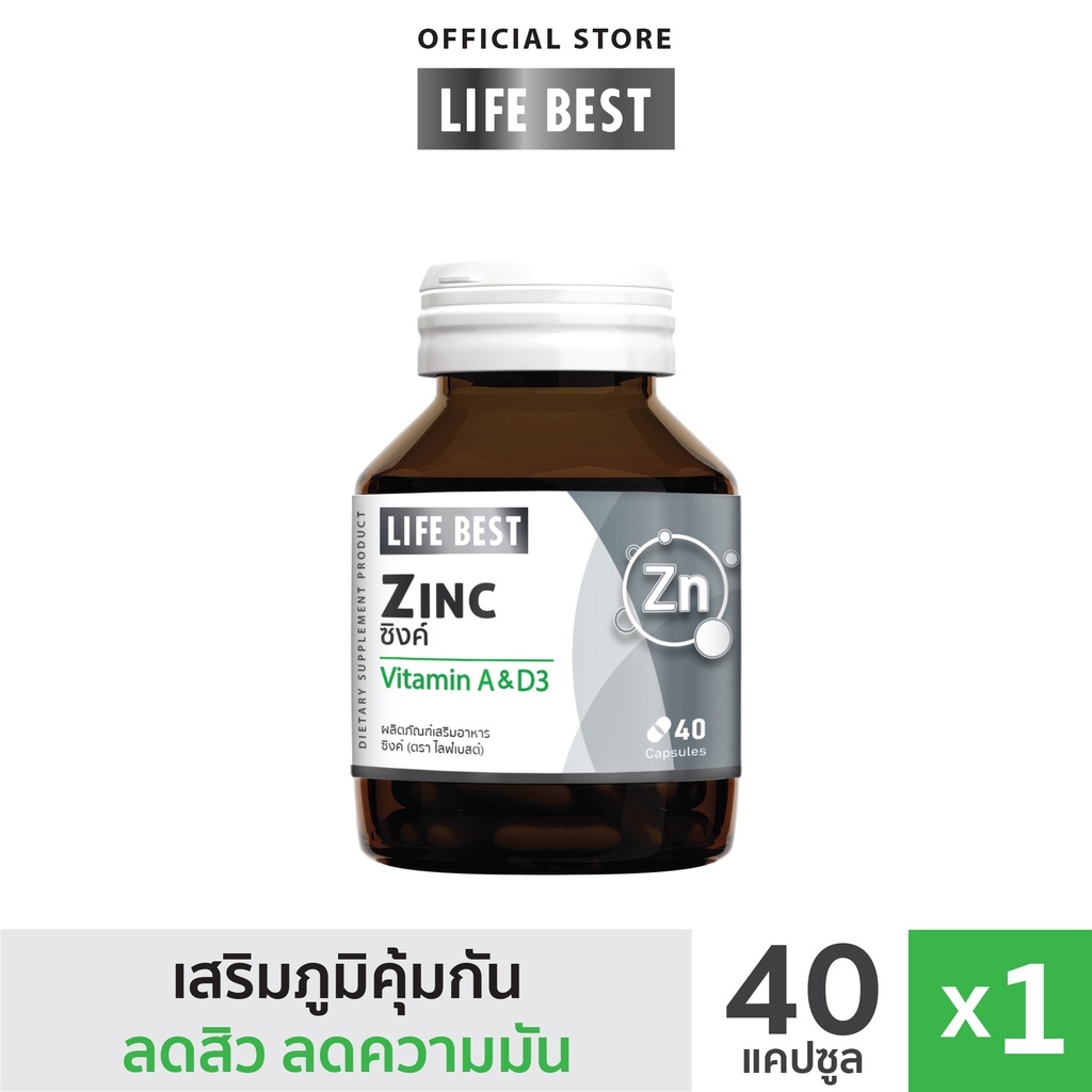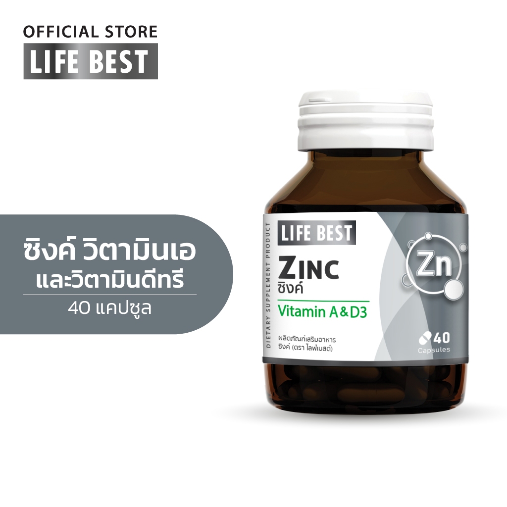 Life Best Zinc Plus Vitamin A,D3 ไลฟ์เบสต์ ซิงค์ พลัส วิตามิน เอ,ดีสาม (40 แคปซูล)