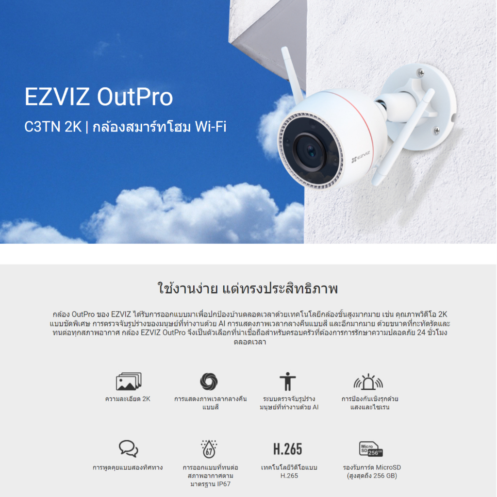 Ezviz รุ่น C3TN OutPro 2K Wi-Fi Camera H.265 : กล้องวงจรปิดภายนอก (EZV-C3TN-A01H3WKFL)