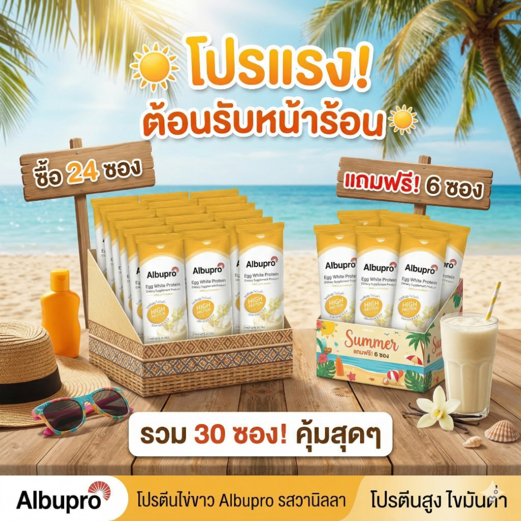 24 ซอง แถม 6 ซอง {ต้องกดสินค้า 2 ครั้ง} (สินค้าไม่มีกล่องนะคะ) กล่องคุ้มกว่า อาหารเสริม โปรตีน ไข่ขาว อัลบูโปร