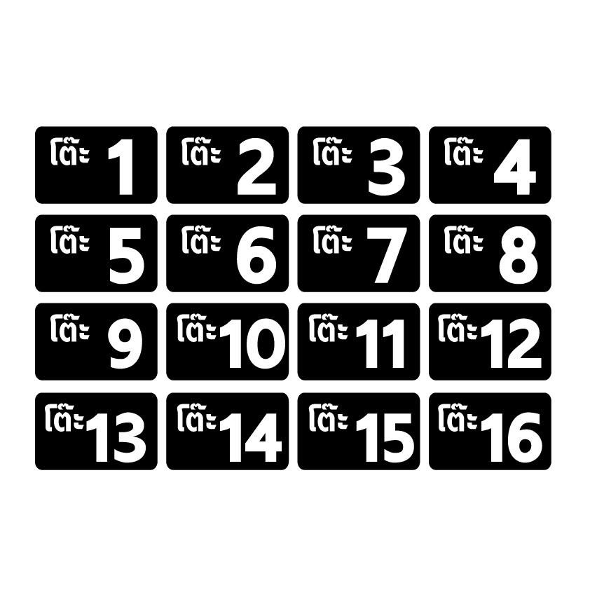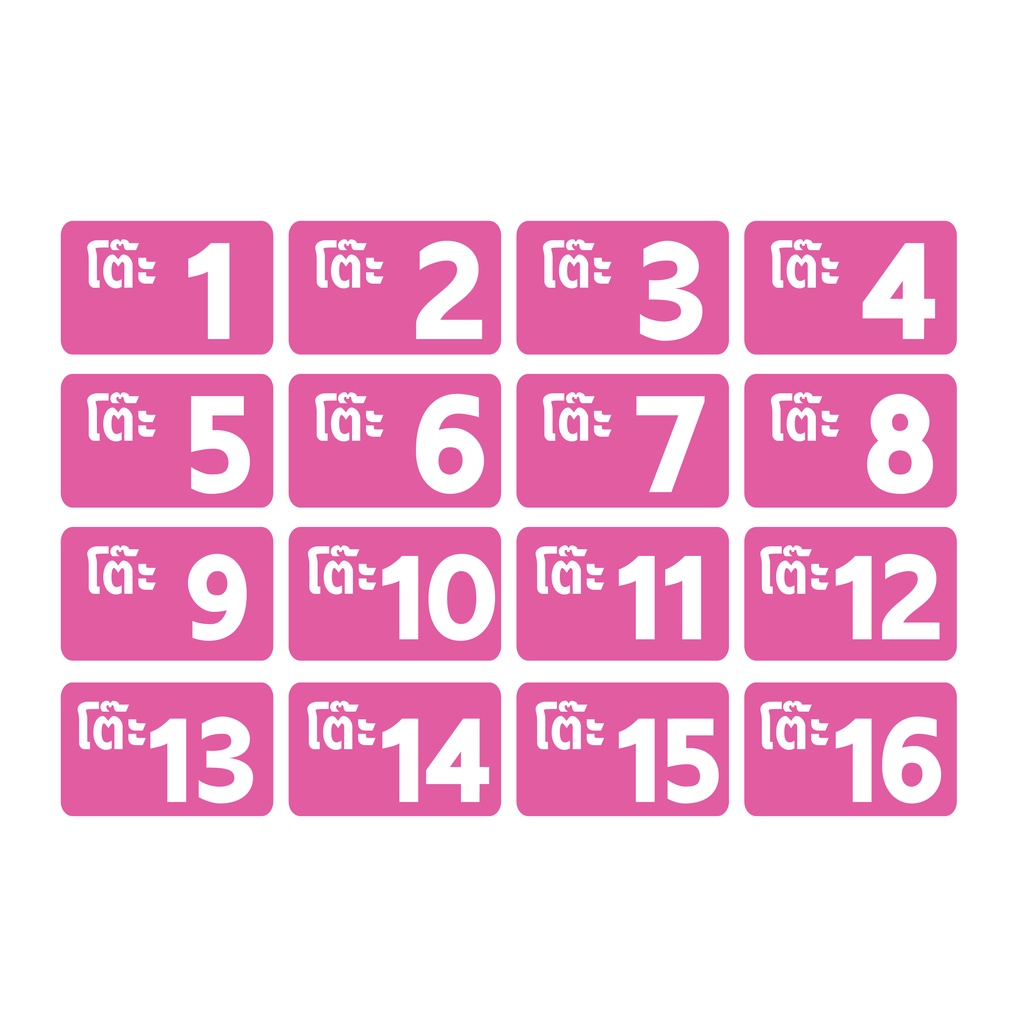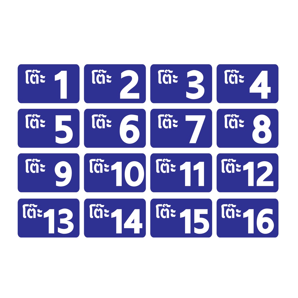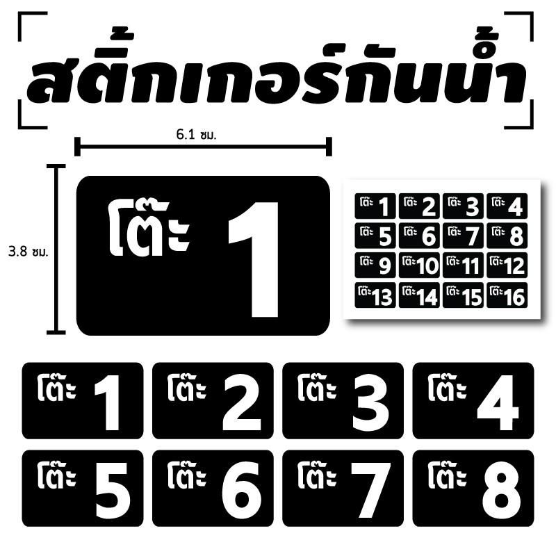 สติ้กเกอร์กันน้้ำ เบอร์ เลขโต๊ะ (สติกเกอร์โต๊ะ 1-16) 16 ดวง 1 แผ่น A4 [รหัส C-054]