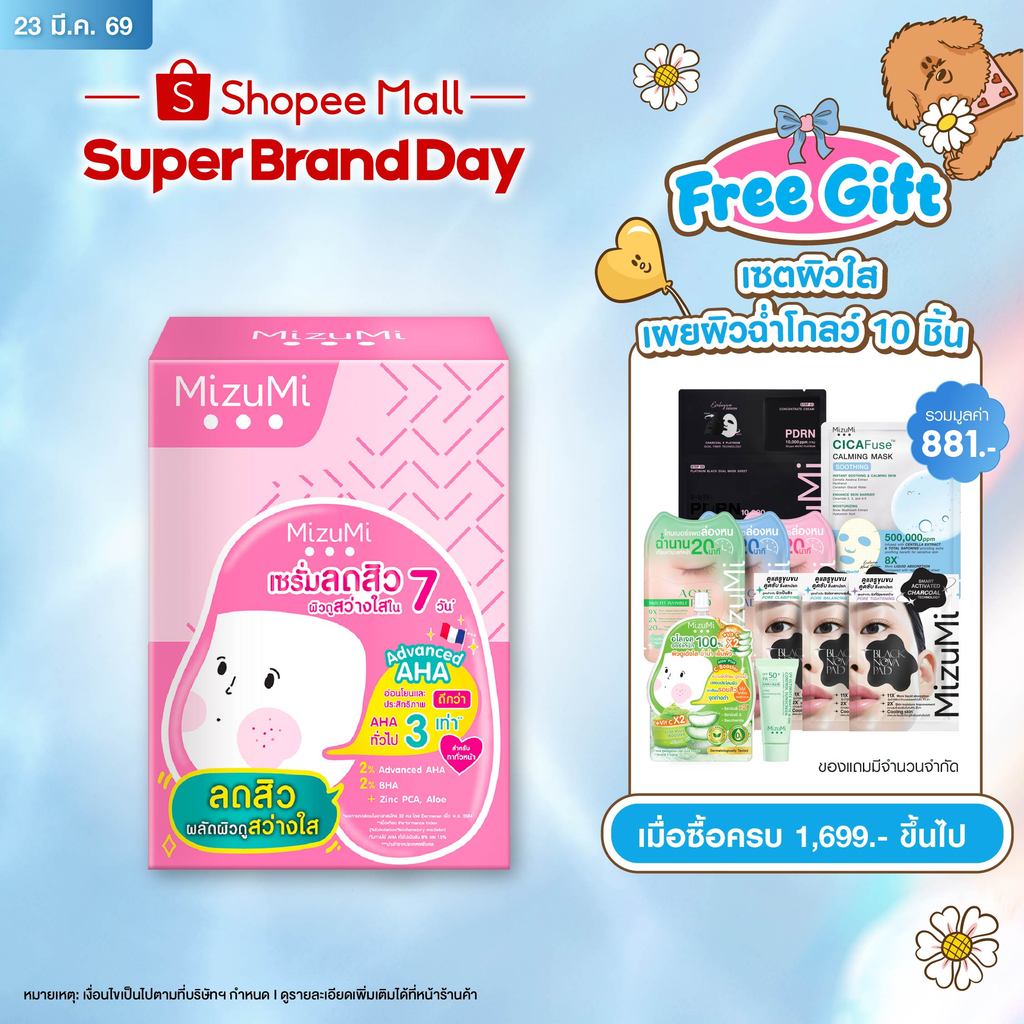 MizuMi AHA BHA Acne Serum (6g x 6ซอง) เซรั่มลดสิว เผยผิวดูเนียนเรียบ ผิวสว่าง ดุจเปิดไฟให้ผิว