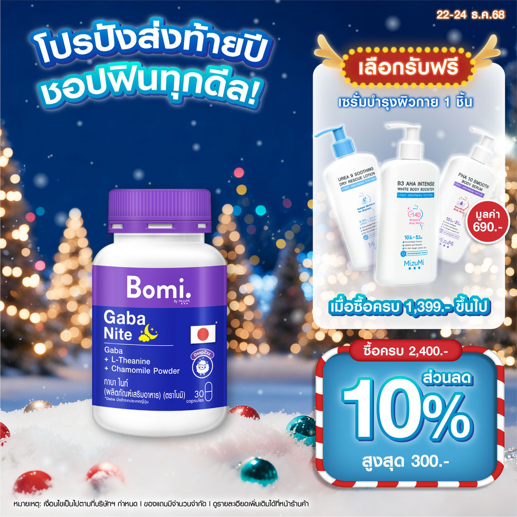 Bomi Gaba Nite 30 capsules กาบาไนท์ นอนง่าย หลับลึก ปรับคลื่นสมอง ผ่อนคลาย ลดความเครียด ลดการตื่นระหว่างการนอน