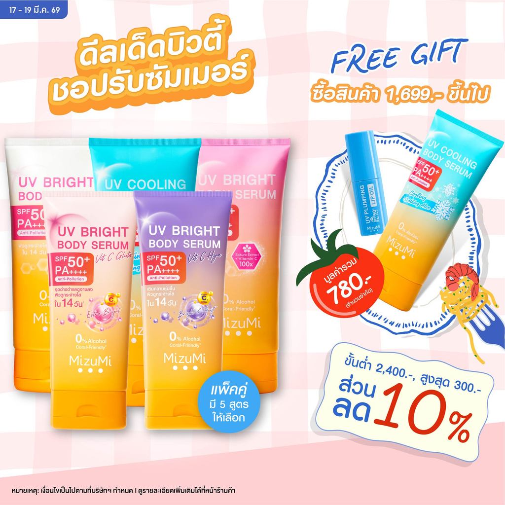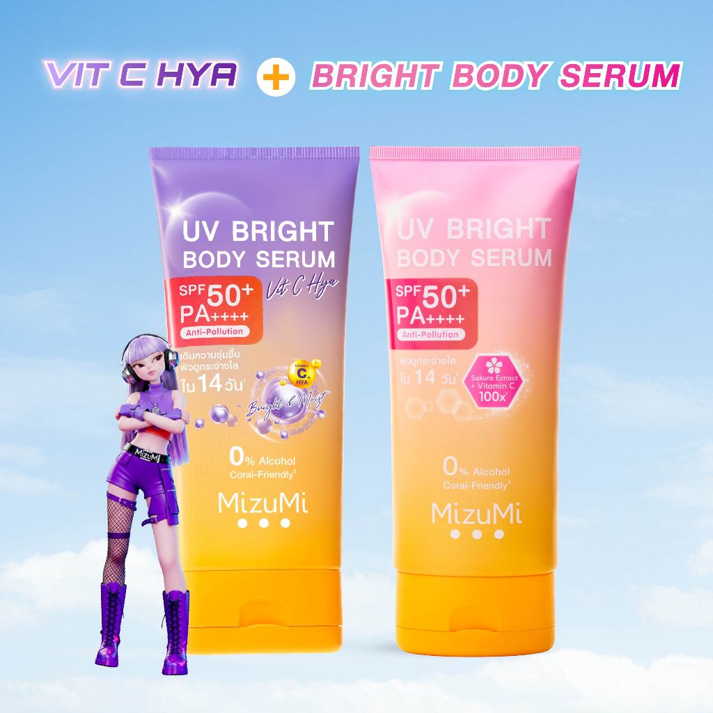[แพ็คคู่ SET DUO] MizuMi Bright Body Serum เซตเซรั่มกันแดดทาผิวกาย เบาสบาย ซึมไว