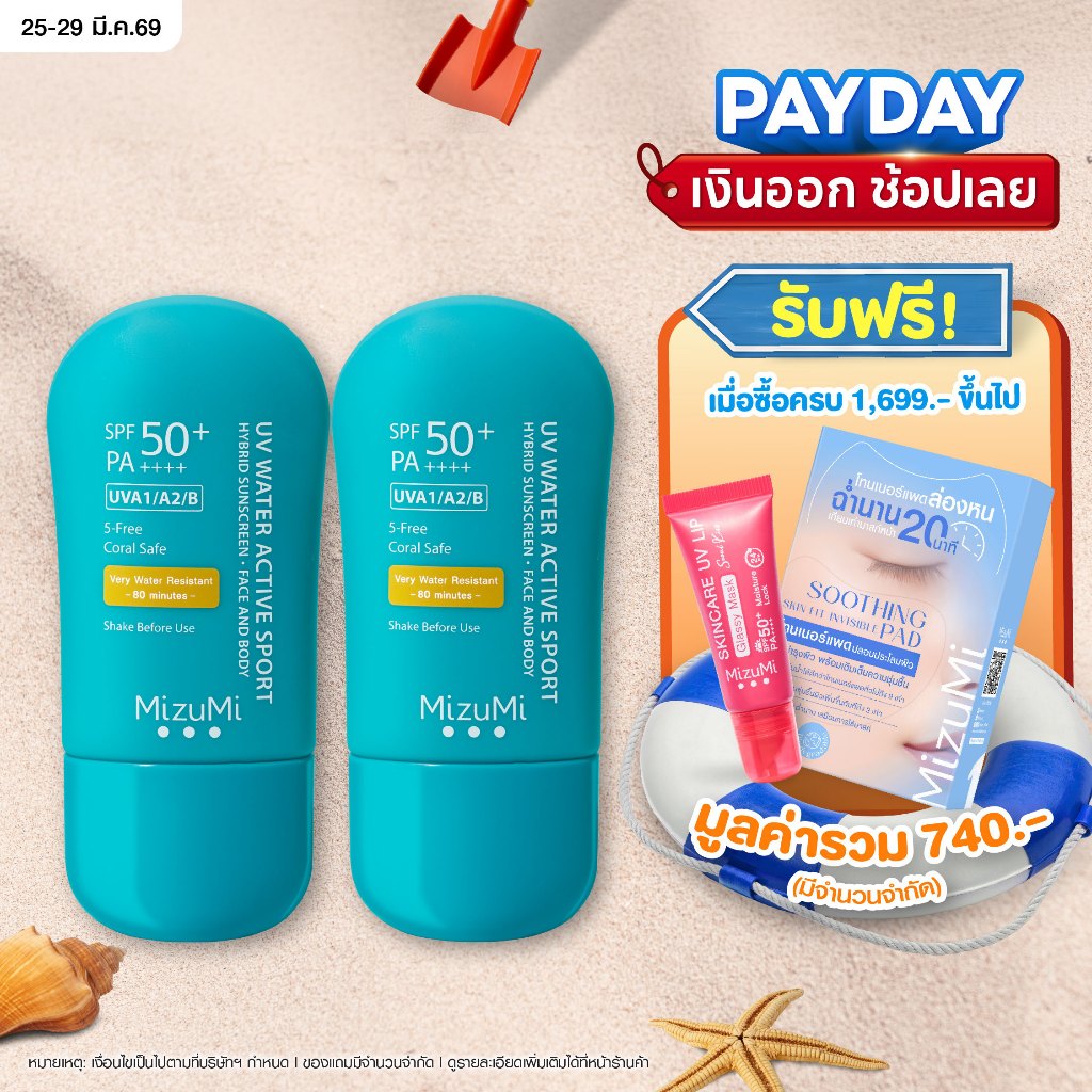[แพ็คคู่] [สูตรอัพเกรด ไม่แสบตา เนื้อบางเบา] MizuMi UV Water Active Sport 40g กันแดดกันน้ำคุมมัน กันเหงื่อ