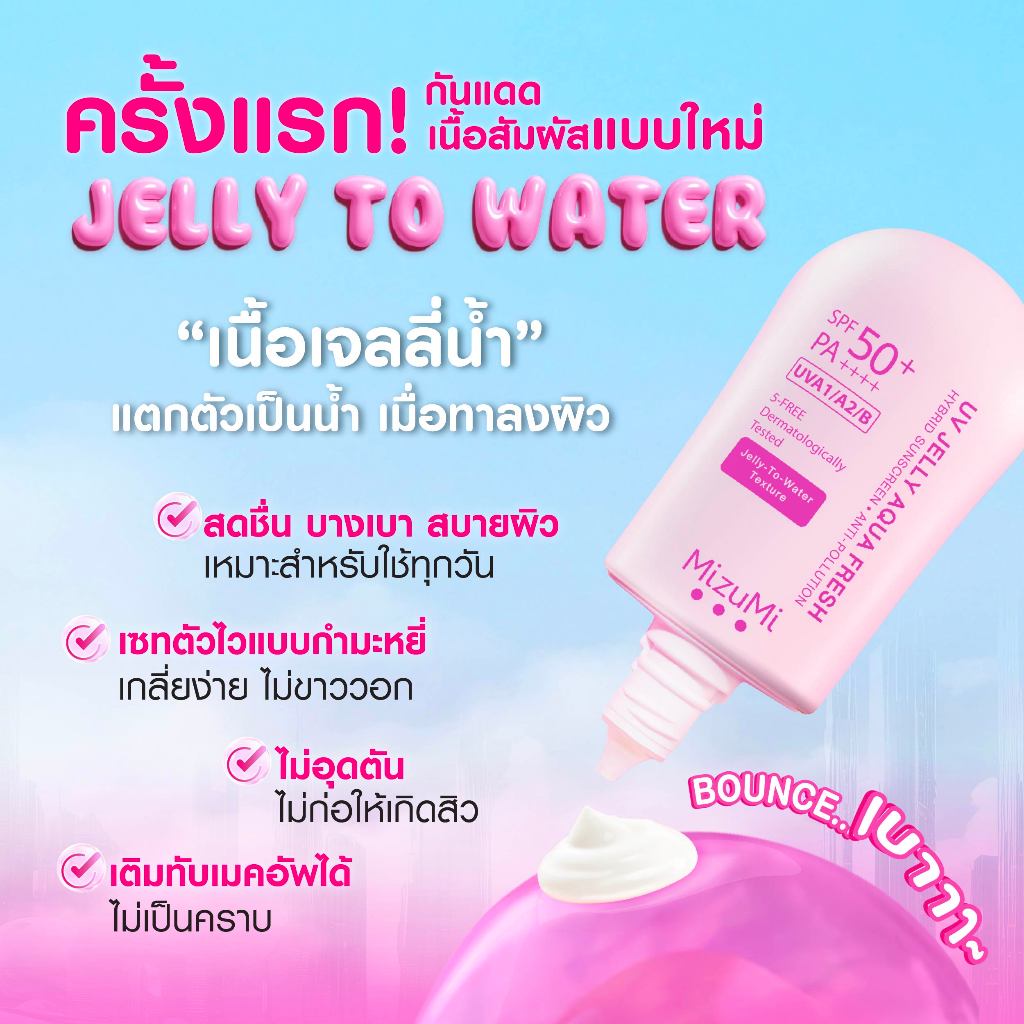 [สูตรใหม่เนื้ออัพเกรด] MizuMi UV Jelly Aqua Fresh SPF50+ PA++++40g กันแดดเจลลี่น้ำ เซตตัวไว ผิวฉ่ำโกลว์ ปกป้องสูงสุด