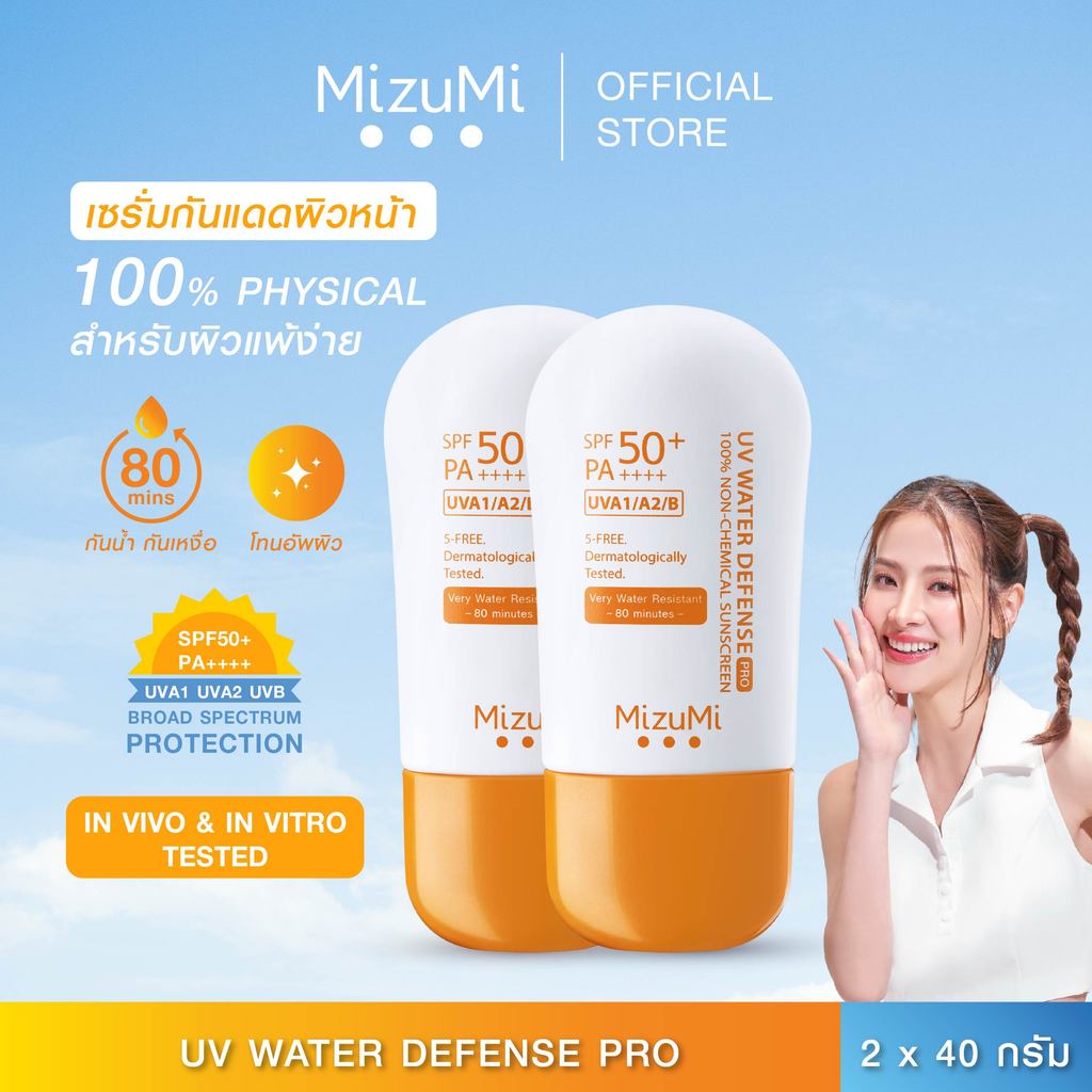 [แพ็คคู่] MizuMi UV Water Defense Pro SPF50+ PA++++40g รุ่นกันน้ำ กันเหงื่อ คุมมัน ออกแดดได้ทันที ผิวแพ้ง่าย