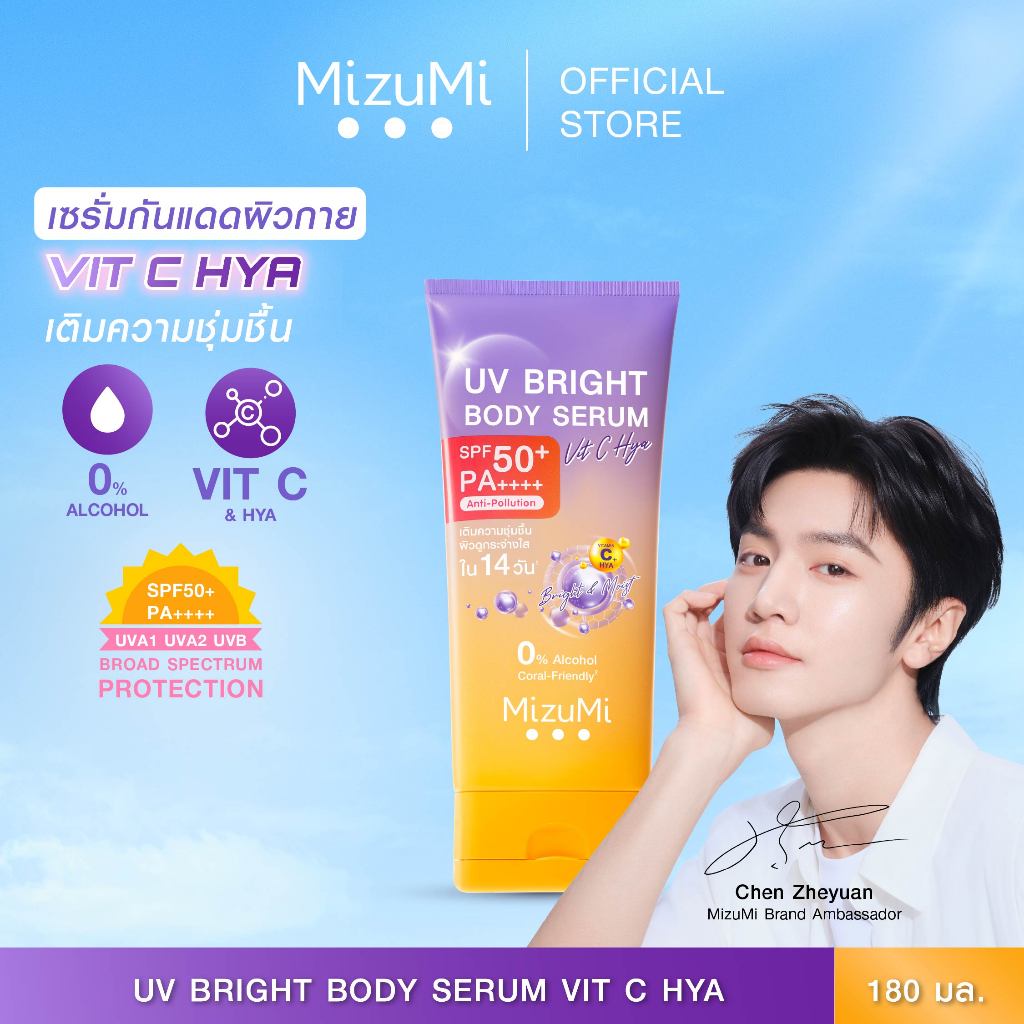 MizuMi UV Bright Body Serum Vit C Hya 180ml เซรั่มกันแดดทาผิวกาย สูตรวิตซีไฮยา ผิวนุ่มชุ่มชื้น ไม่แห้งกร้าน