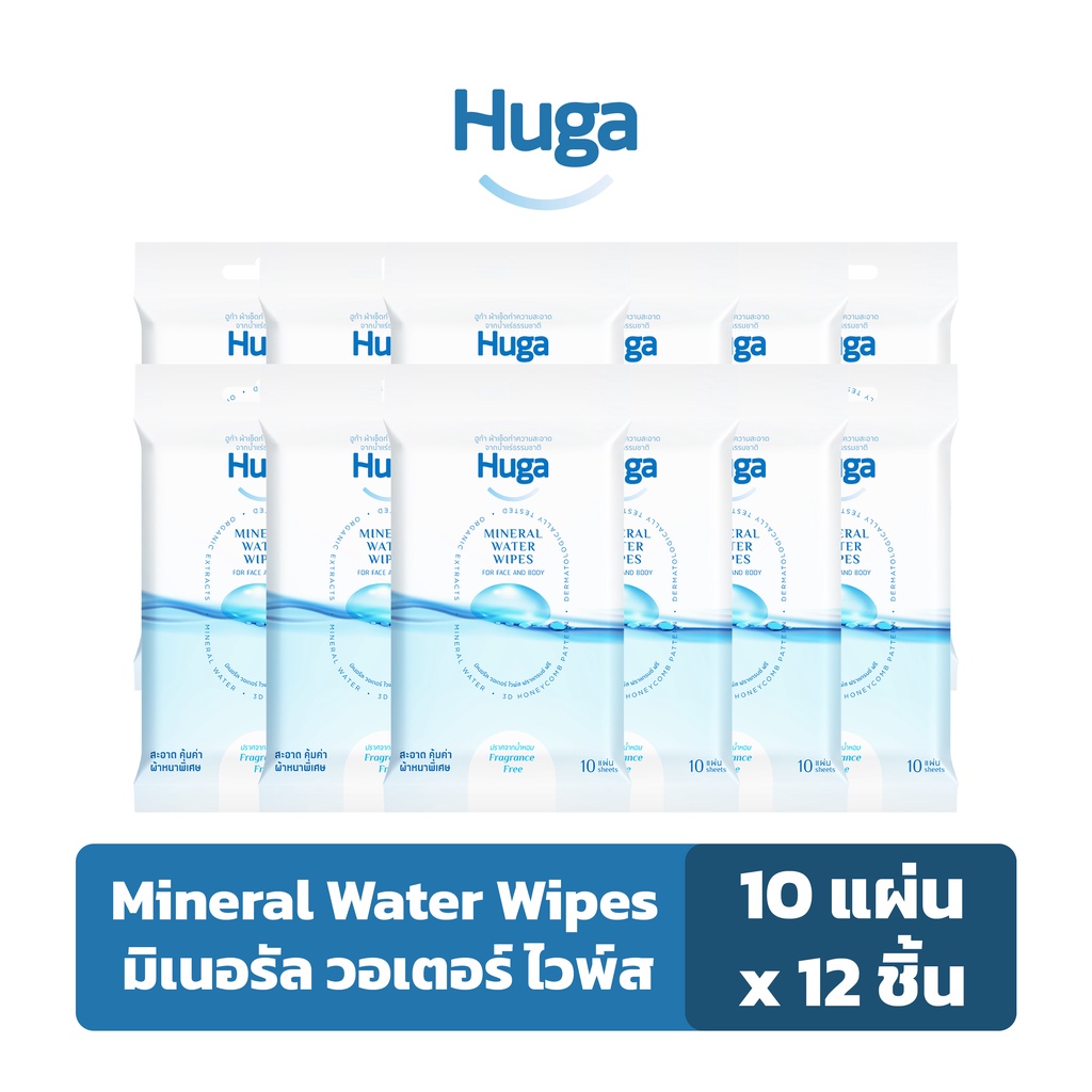 ฮูก้า ทิชชู่เปียก สูตรน้ำแร่ธรรมชาติ Huga Mineral Water Wipes 10 แผ่น (12 ชิ้น)