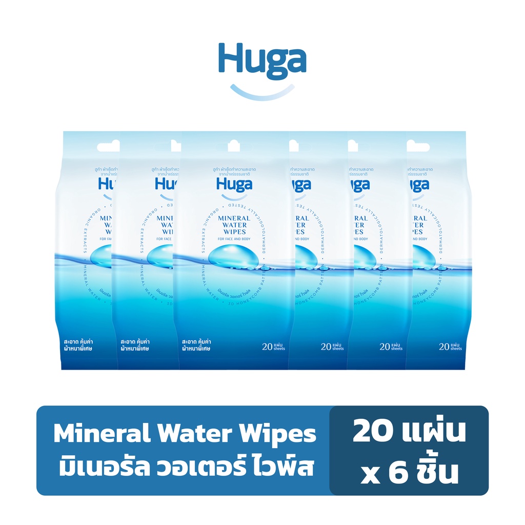 ฮูก้า ทิชชู่เปียก สูตรน้ำแร่ธรรมชาติ Huga Mineral Water Wipes 20 แผ่น (6 ชิ้น)