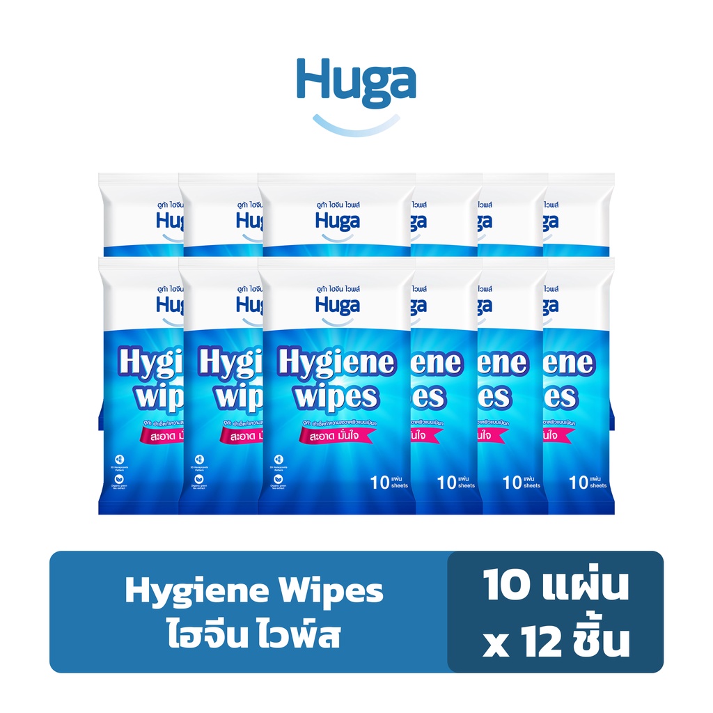ฮูก้า ทิชชู่เปียก สูตรไฮจีน แอนตี้แบคทีเรีย Huga Hygiene Wipes 10 แผ่น (12 ชิ้น)