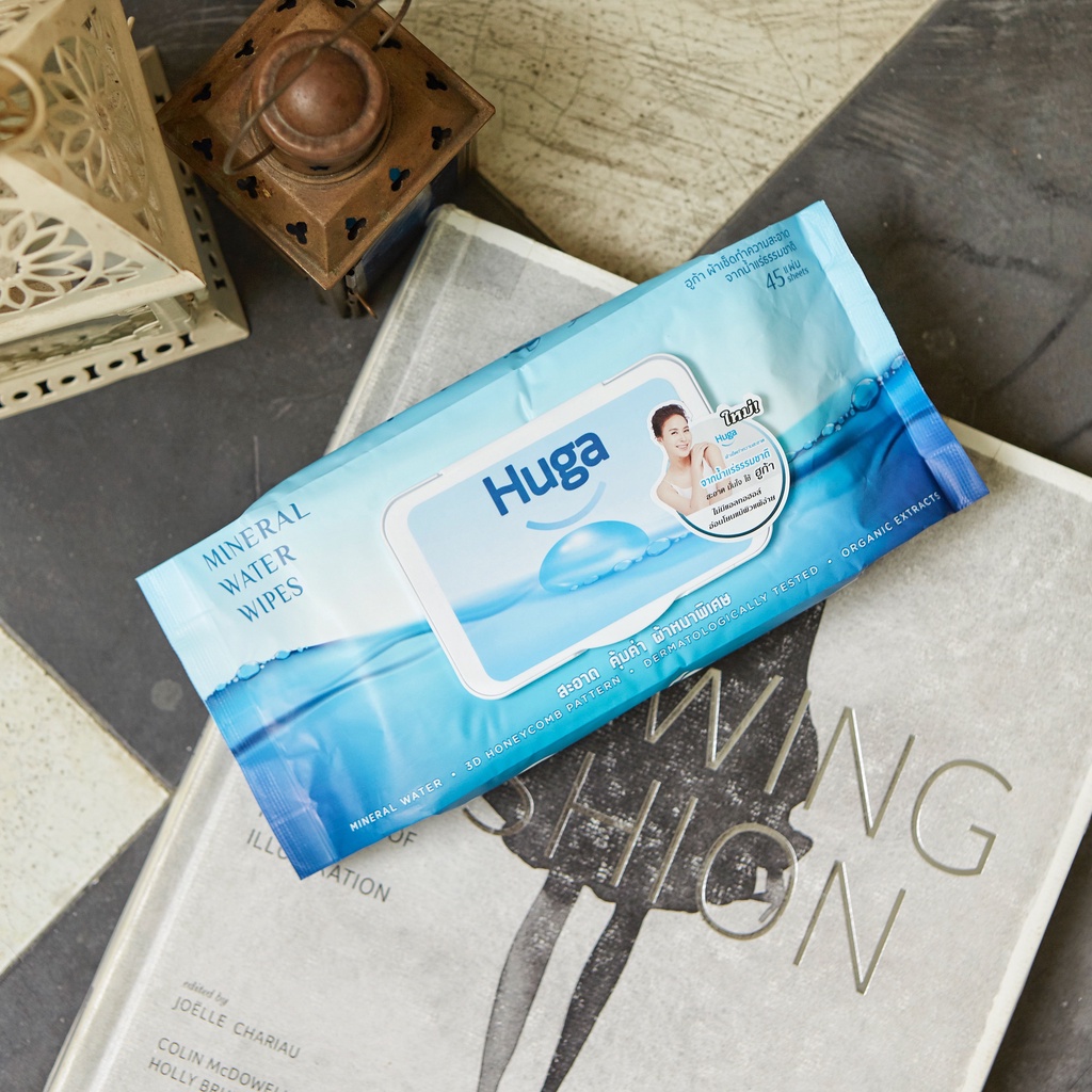ฮูก้า ทิชชู่เปียก สูตรน้ำแร่ธรรมชาติ Huga Mineral Water Wipes 45 แผ่น (2 ชิ้น)