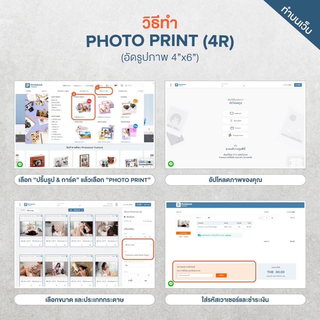 Photobook: อัดรูป 4x6 นิ้ว (30 ใบ) ปริ้นรูป ล้างรูป ทำรูป 4R - ทำได้เองออนไลน์ ผ่านคอมหรือมือถือ
