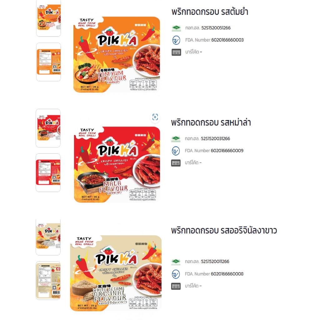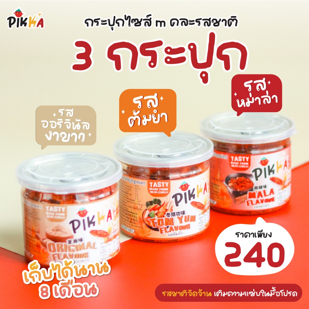พิกก้า พริกทอดกรอบคุณภาพไซส์ M (รสหม่าล่า รสงาขาว รสต้มยำ) 🌶