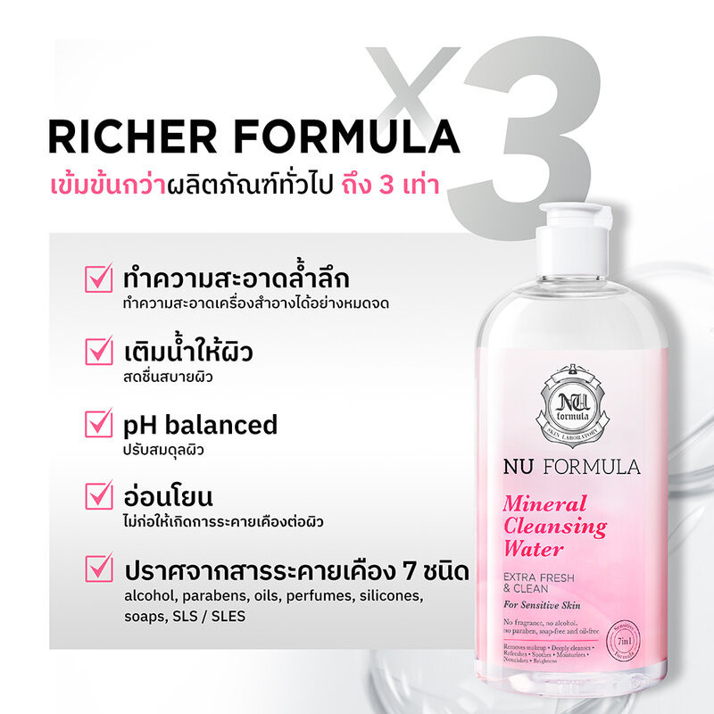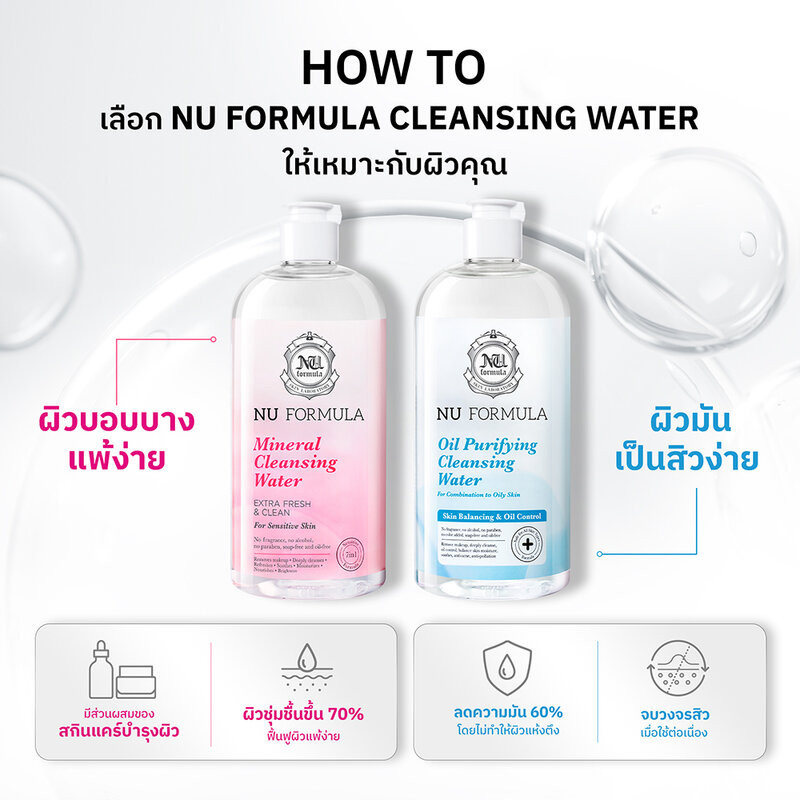 Nu Formula Mineral Cleansing Water For Sensitive Skin คลีนซิ่งวอเตอร์ นู ฟอร์มูล่า สูตรอ่อนโยน ผิวบอบบางแพ้ง่าย.