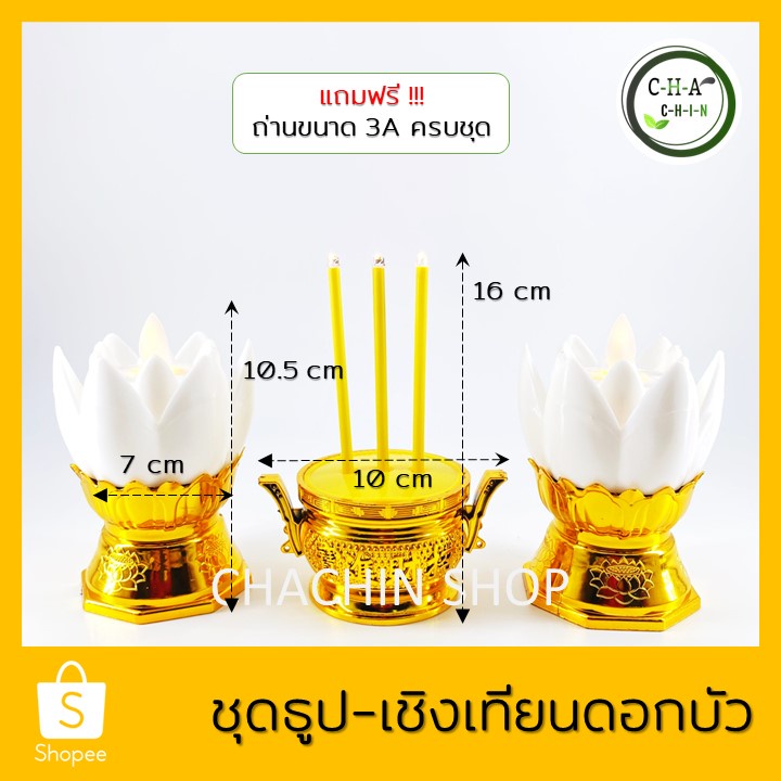 ชุดธูปเทียนไฟฟ้า เชิงเทียน ดอกบัว ไฟฟ้า LED แถมถ่านฟรี พร้อมใช้งานทันที สายบุญห้ามพลาด