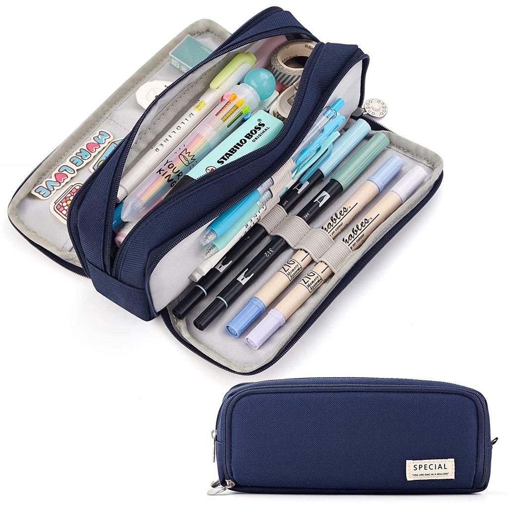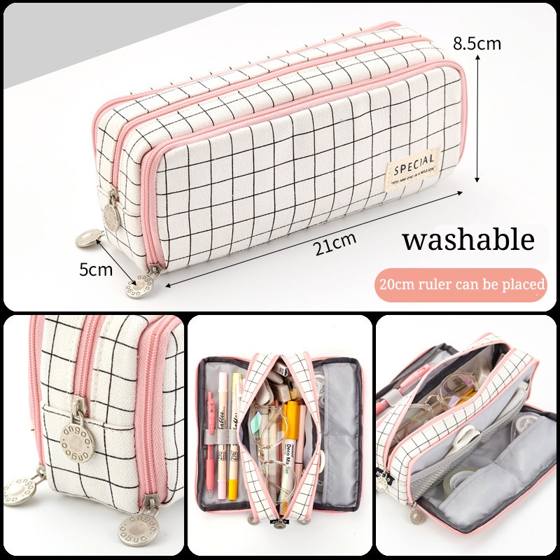 [จัดส่งจากกรุงเทพ]กระเป๋าดินสอคุณภาพสูง, สองชั้น, ความจุขนาดใหญ่, กล่องดินสอ, กล่องเก็บของ, พับ, สไตล์เรียบง่าย, แบบพกพา กระเป๋าเครื่องสำอาง, สำหรับนักเรียน สำนักงาน, โรงเรียน, เครื่องเขียน, การเขียน