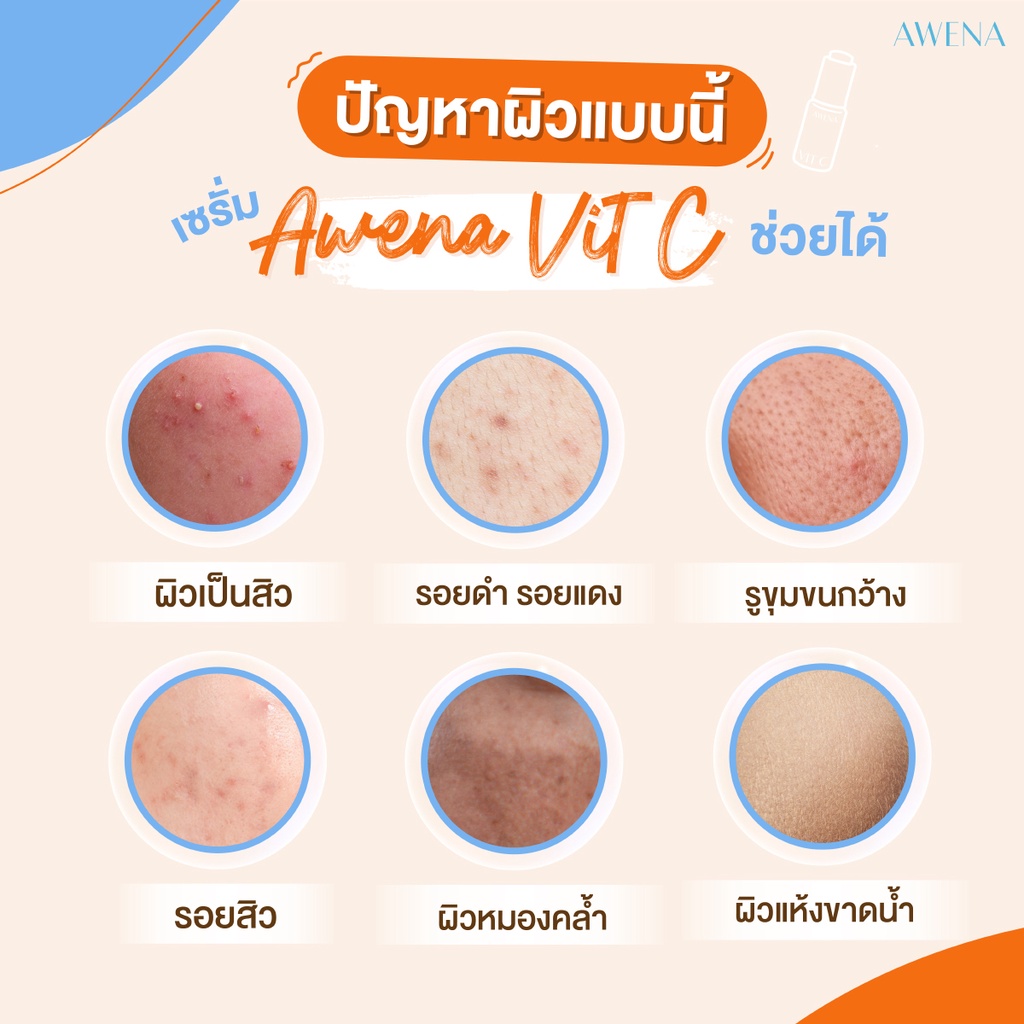 เซรั่มแก้มกี้ AWENA VIT C Perfect Brightening Skin C+ Serum บำรุงผิวให้กระจ่างใส ขนาด 15ml