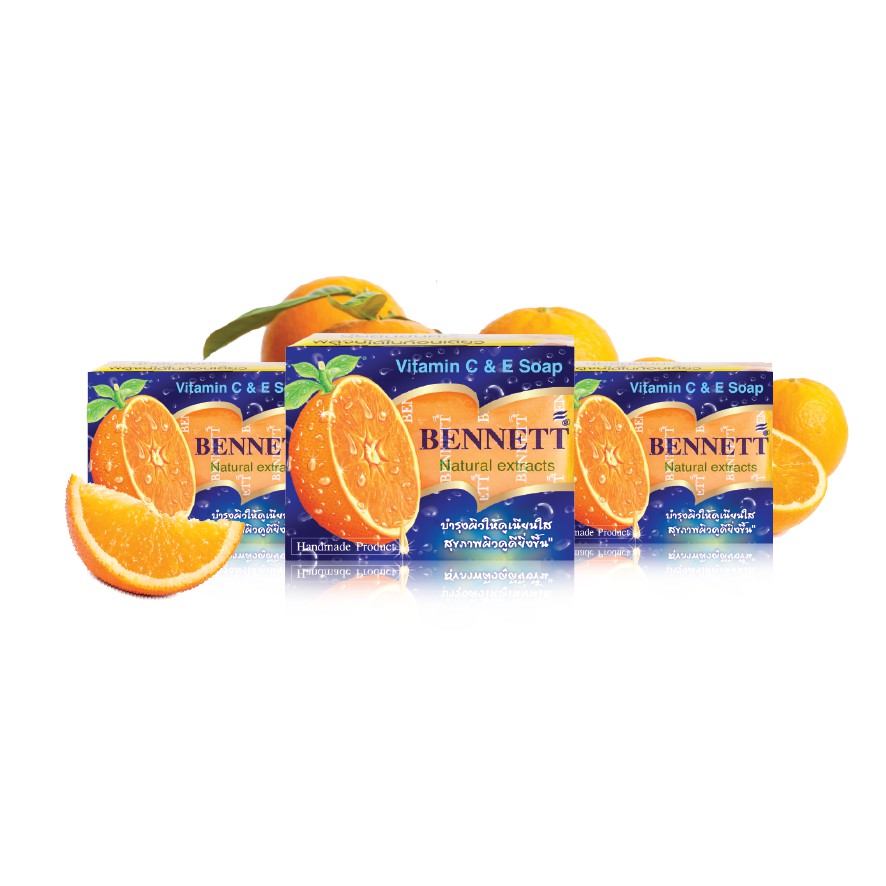 [กรอกโค้ด INC547OZ ลดเพิ่ม 20%] สบู่วิตามิน อี เบนเนท สูตรเพิ่มวิตามินซี จากธรรมชาติ ก้อนสีส้ม BENNETT